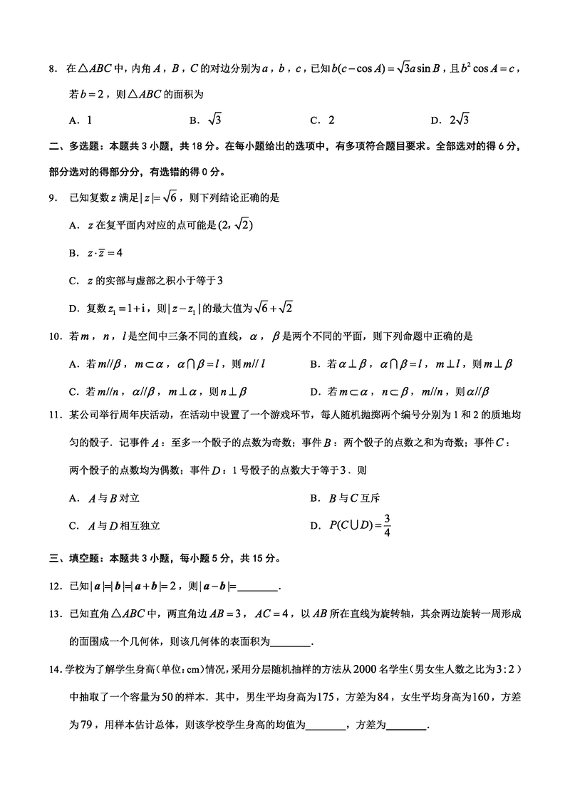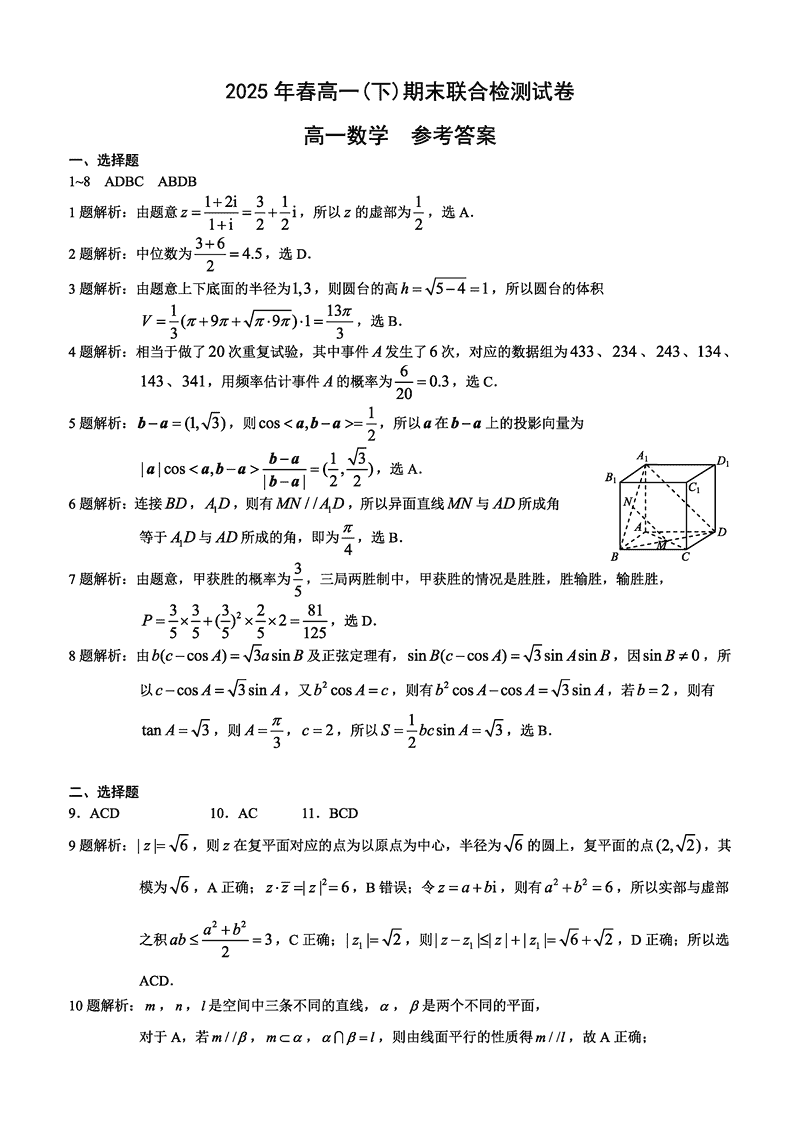 重庆康德教育2025年高一下期末联合检测数学试题及答案 时间:2025-07-10 重庆 高中数学 重庆康德教育2025年高一下期末联合检测数学考试已于近日开考,为方便考生考后及时查看考试情况,查漏补缺、弥补不足,本文整理了试题答案解析相关信息! 数学试题及答案解析