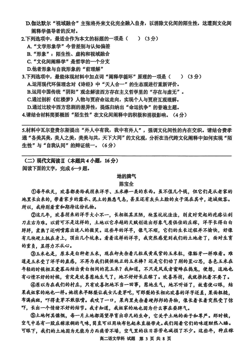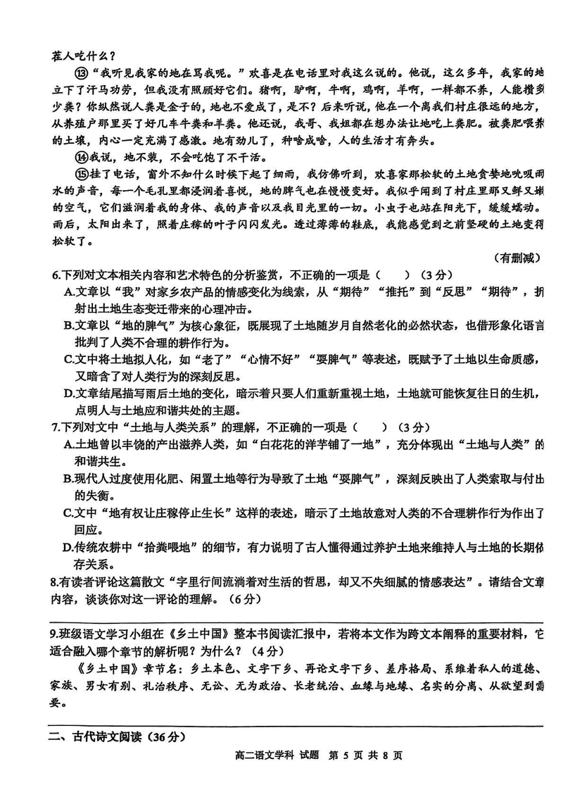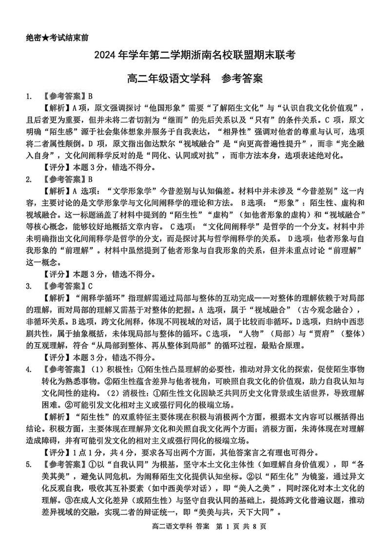 浙江浙南名校2024-2025学年高二下学期6月期末语文试题及答案 时间:2025-07-10 浙江 高中语文 浙江省温州市浙南名校2024-2025学年高二下学期6月期末语文考试已于近日开考,为方便考生考后及时查看考试情况,查漏补缺、弥补不足,本文整理了试题答案解析相关信息! 语文试题及答案解析