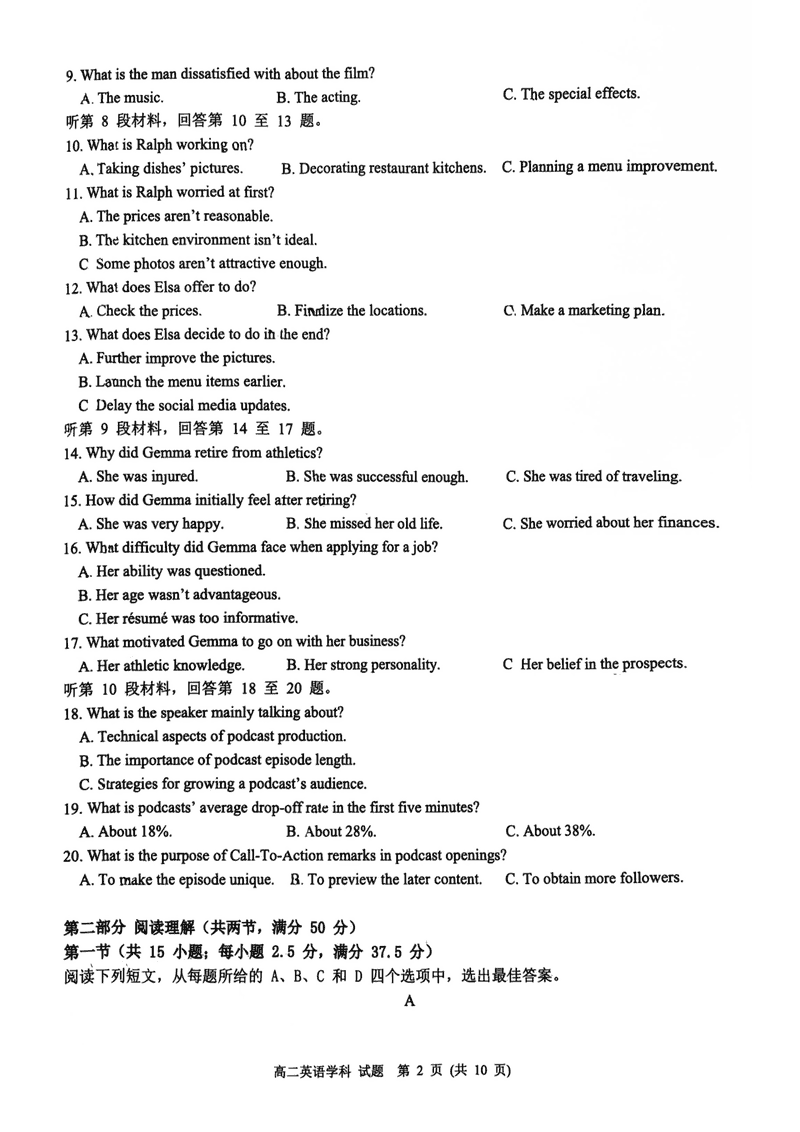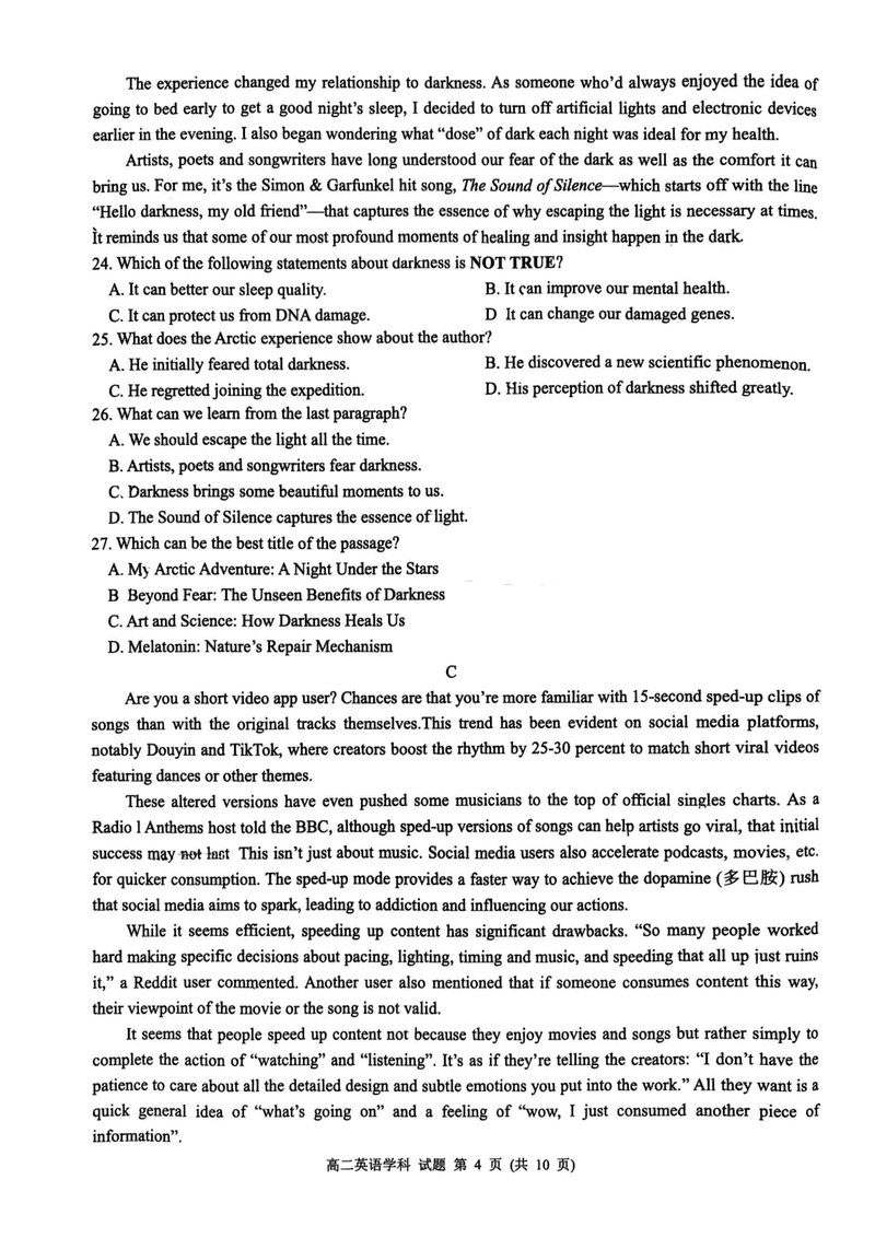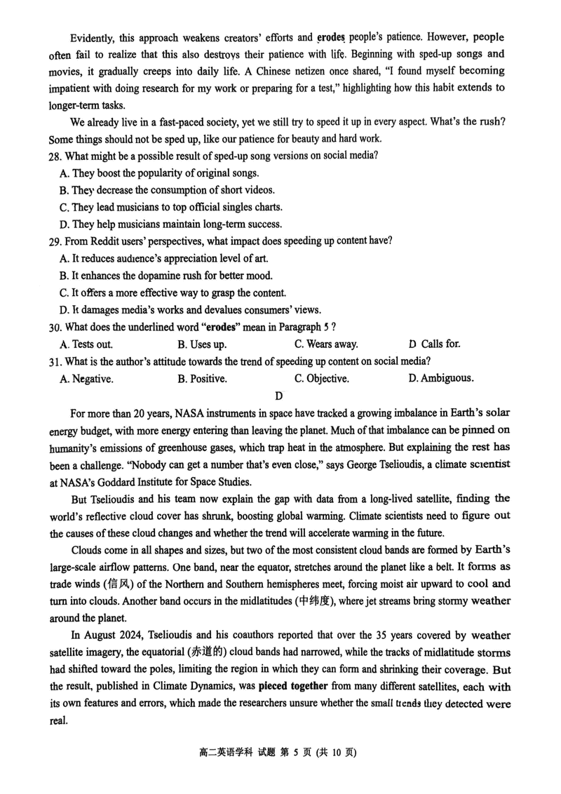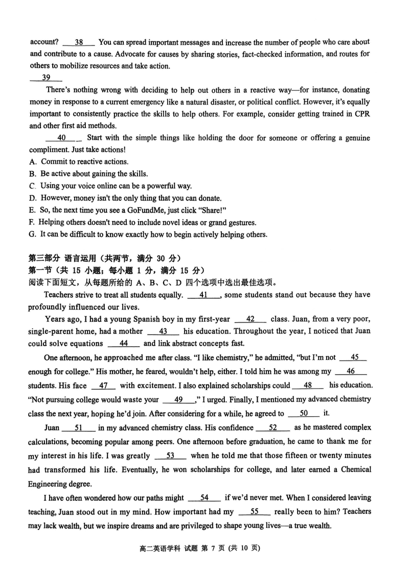 浙江浙南名校2024-2025学年高二下学期6月期末英语试题及答案 时间:2025-07-10 浙江 高中英语 浙江省温州市浙南名校2024-2025学年高二下学期6月期末英语考试已于近日开考,为方便考生考后及时查看考试情况,查漏补缺、弥补不足,本文整理了试题答案解析相关信息! 英语试题及答案解析