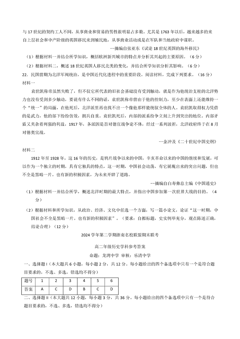 浙江浙南名校2024-2025学年高二下学期6月期末历史试题及答案 时间:2025-07-10 浙江 高中历史 浙江省温州市浙南名校2024-2025学年高二下学期6月期末历史考试已于近日开考,为方便考生考后及时查看考试情况,查漏补缺、弥补不足,本文整理了试题答案解析相关信息! 历史试题及答案解析