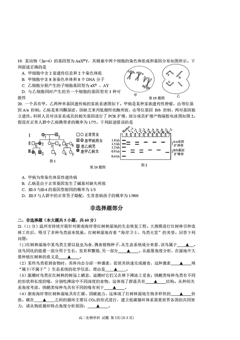 浙江浙南名校2024-2025学年高二下学期6月期末生物试题及答案 时间:2025-07-10 浙江 高中生物 浙江省温州市浙南名校2024-2025学年高二下学期6月期末生物考试已于近日开考,为方便考生考后及时查看考试情况,查漏补缺、弥补不足,本文整理了试题答案解析相关信息! 生物试题及答案解析