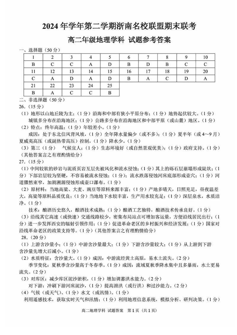浙江浙南名校2024-2025学年高二下学期6月期末地理试题及答案 时间:2025-07-10 浙江 高中地理 浙江省温州市浙南名校2024-2025学年高二下学期6月期末地理考试已于近日开考,为方便考生考后及时查看考试情况,查漏补缺、弥补不足,本文整理了试题答案解析相关信息! 地理试题及答案解析