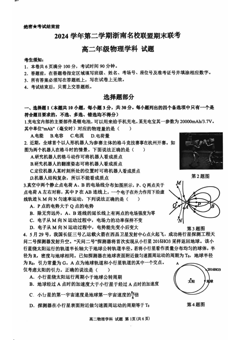 浙江浙南名校2024-2025学年高二下学期6月期末物理试题及答案 时间:2025-07-10 浙江 高中物理 浙江省温州市浙南名校2024-2025学年高二下学期6月期末物理考试已于近日开考,为方便考生考后及时查看考试情况,查漏补缺、弥补不足,本文整理了试题答案解析相关信息! 物理试题及答案解析