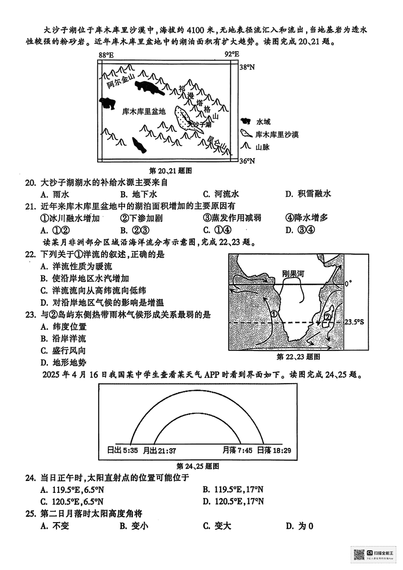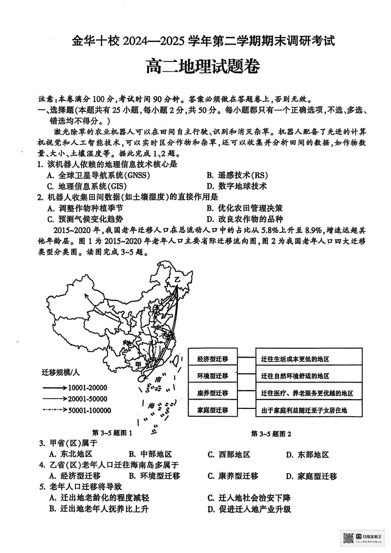 金华市十校2024-2025学年高二下学期6月期末调研地理试题及答案 时间:2025-07-10 浙江 高中地理 浙江省金华市十校2024-2025学年高二下学期6月期末调研地理考试已于近日开考,为方便考生考后及时查看考试情况,查漏补缺、弥补不足,本文整理了试题答案解析相关信息! 地理试题及答案解析