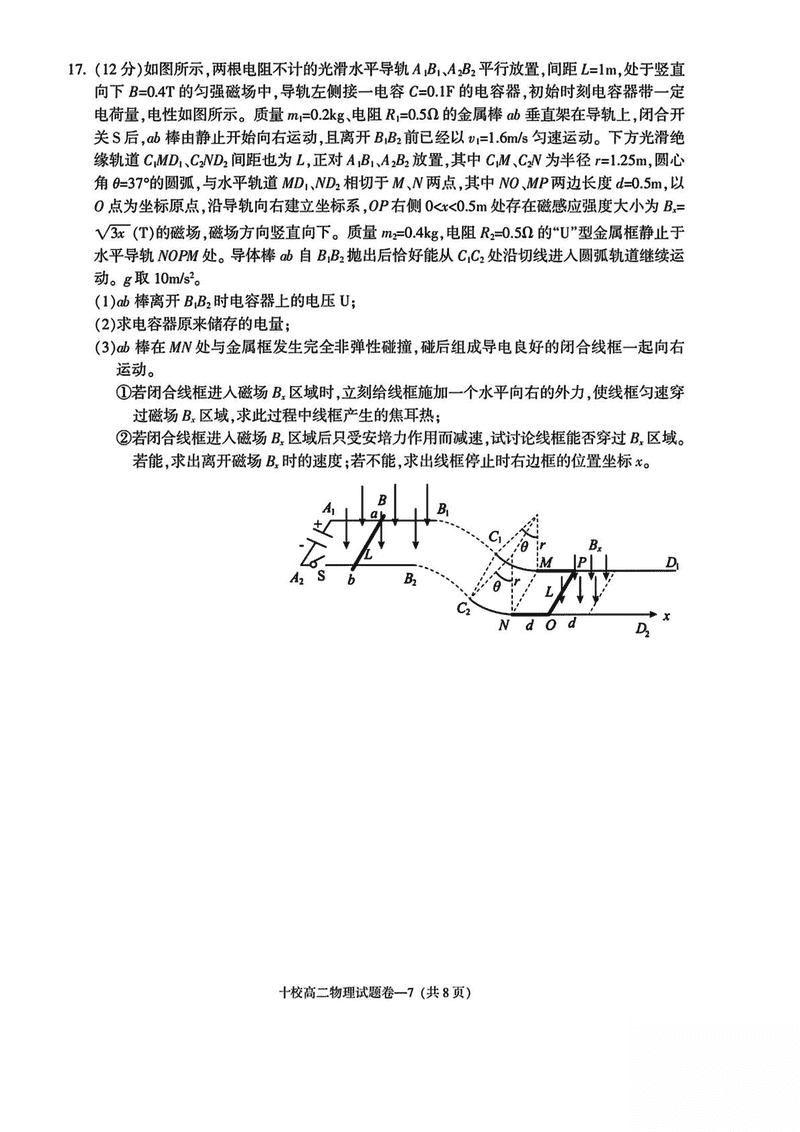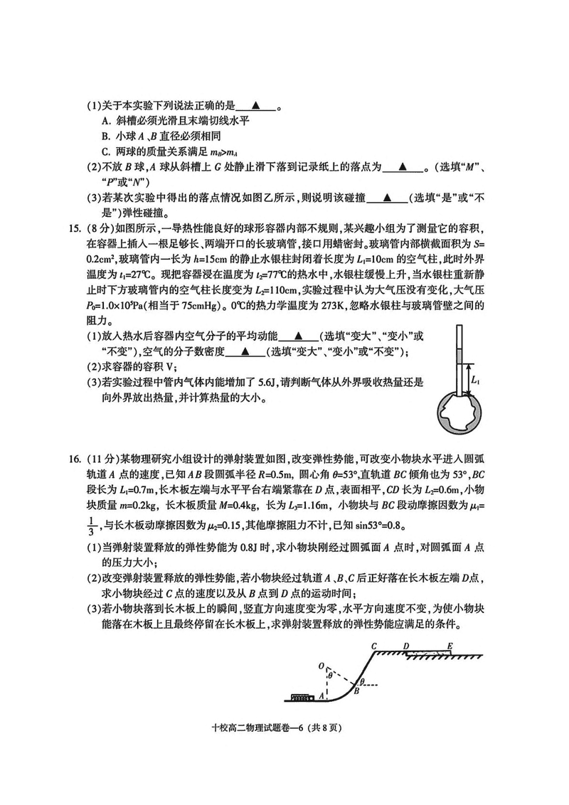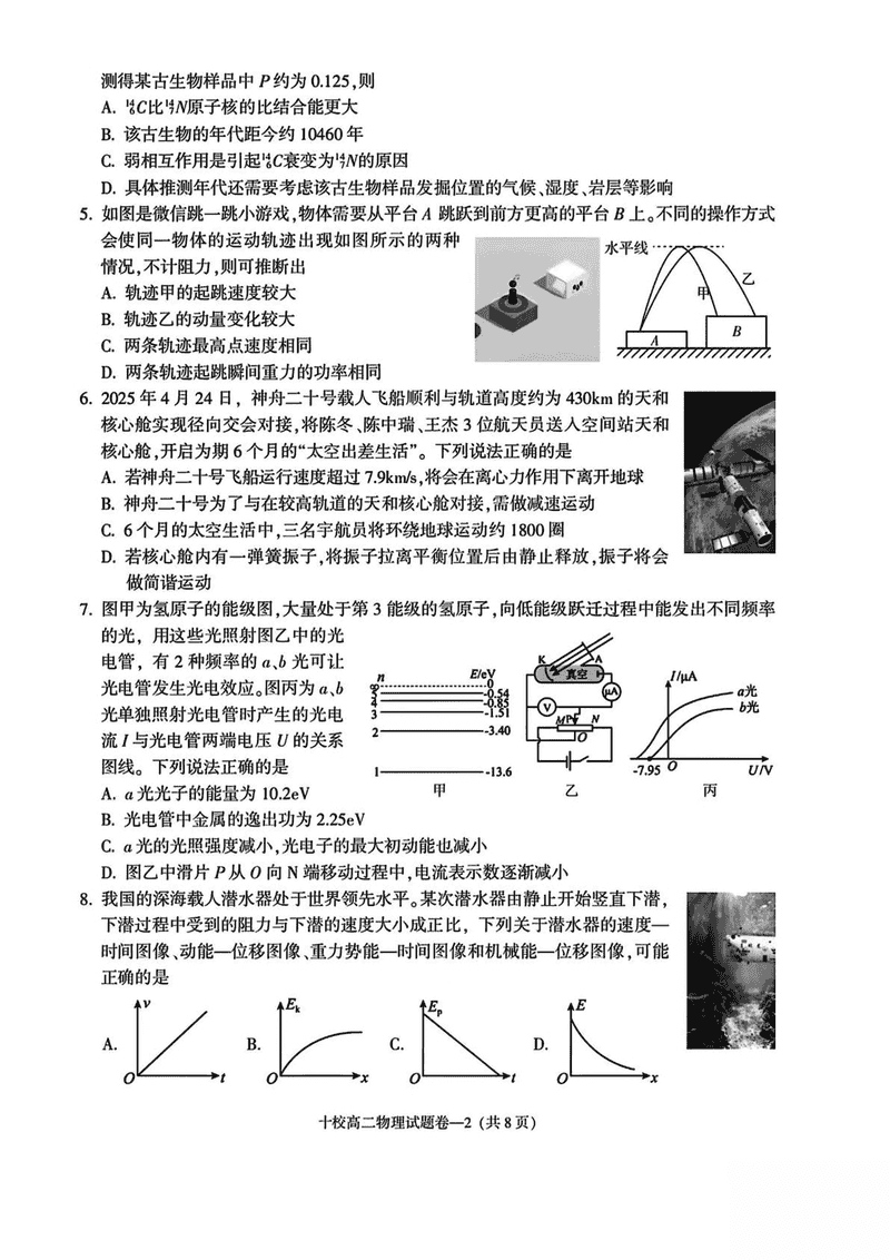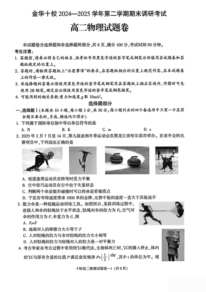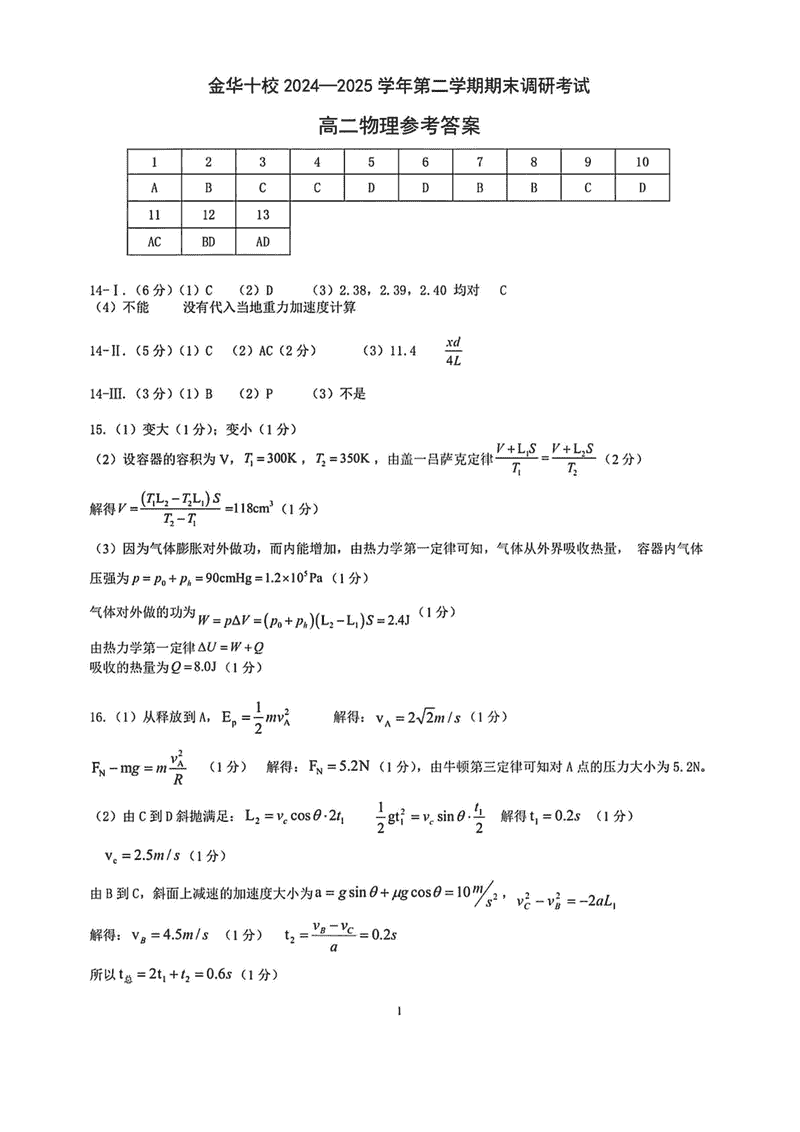 金华市十校2024-2025学年高二下学期6月期末调研物理试题及答案 时间:2025-07-10 浙江 高中物理 浙江省金华市十校2024-2025学年高二下学期6月期末调研物理考试已于近日开考,为方便考生考后及时查看考试情况,查漏补缺、弥补不足,本文整理了试题答案解析相关信息! 物理试题及答案解析