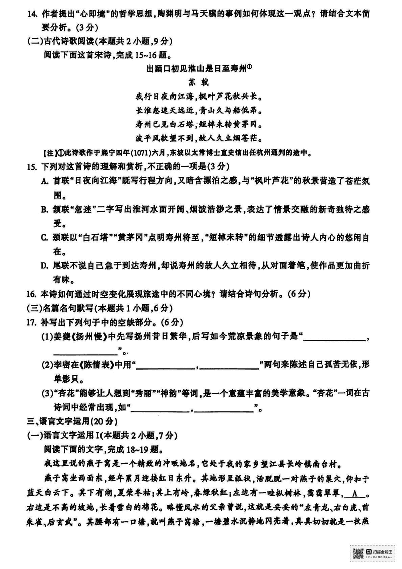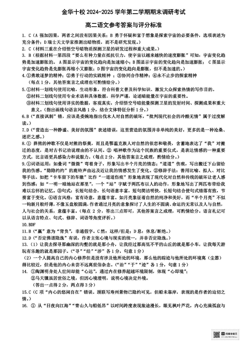金华市十校2024-2025学年高二下学期6月期末调研语文试题及答案 时间:2025-07-10 浙江 高中语文 浙江省金华市十校2024-2025学年高二下学期6月期末调研语文考试已于近日开考,为方便考生考后及时查看考试情况,查漏补缺、弥补不足,本文整理了试题答案解析相关信息! 语文试题及答案解析
