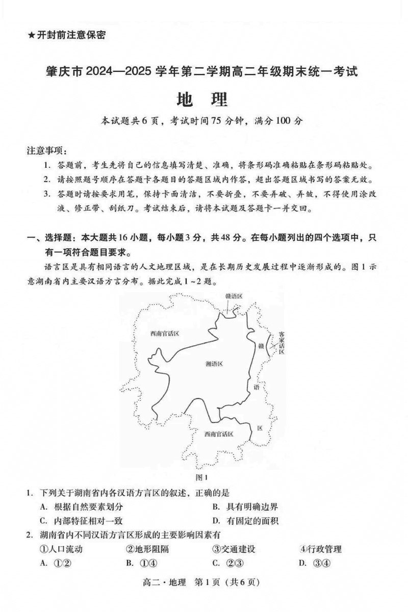 肇庆市2024-2025学年高二下学期期末地理试题及答案 时间:2025-07-10 广东 高中地理 广东省肇庆市2024-2025学年高二下学期期末地理考试已于近日开考,为方便考生考后及时查看考试情况,查漏补缺、弥补不足,本文整理了试题答案解析相关信息! 地理试题及答案解析