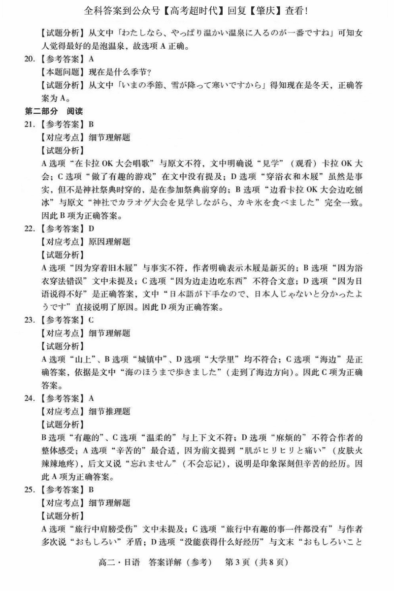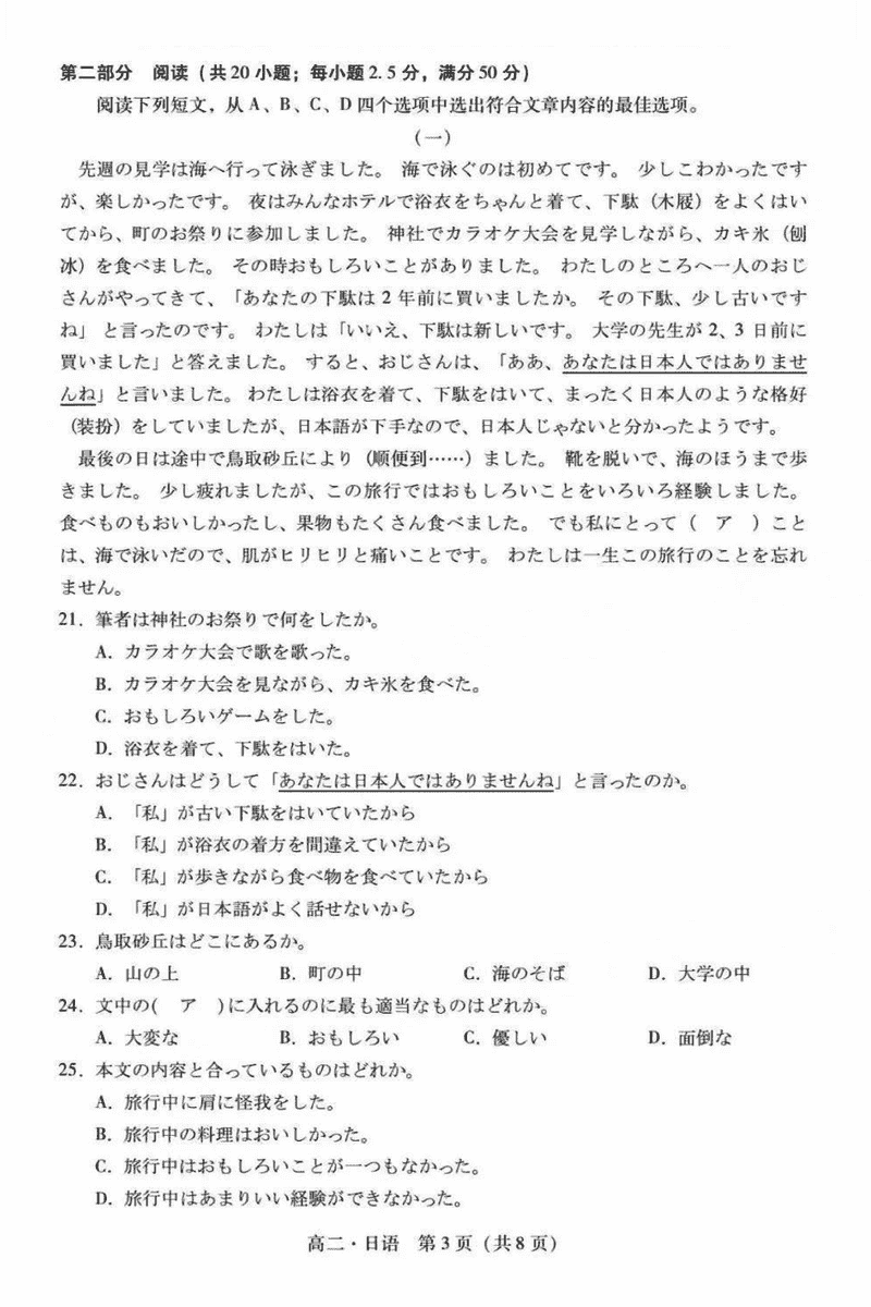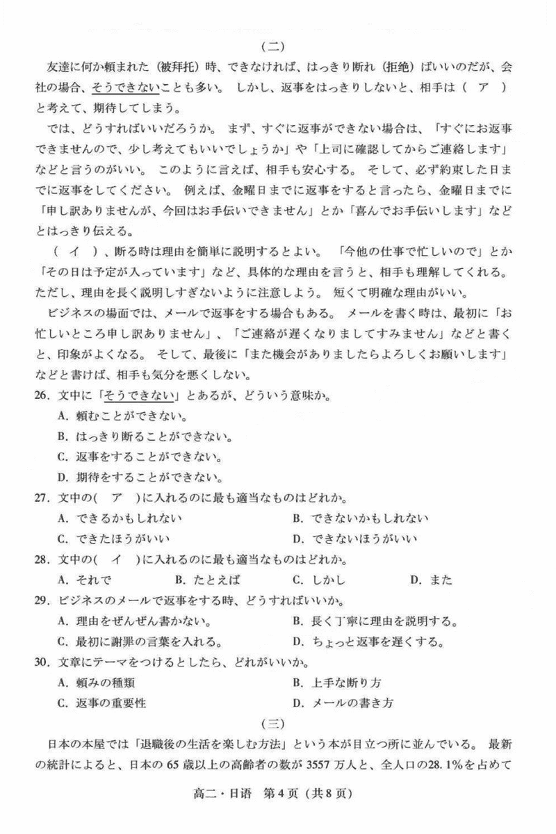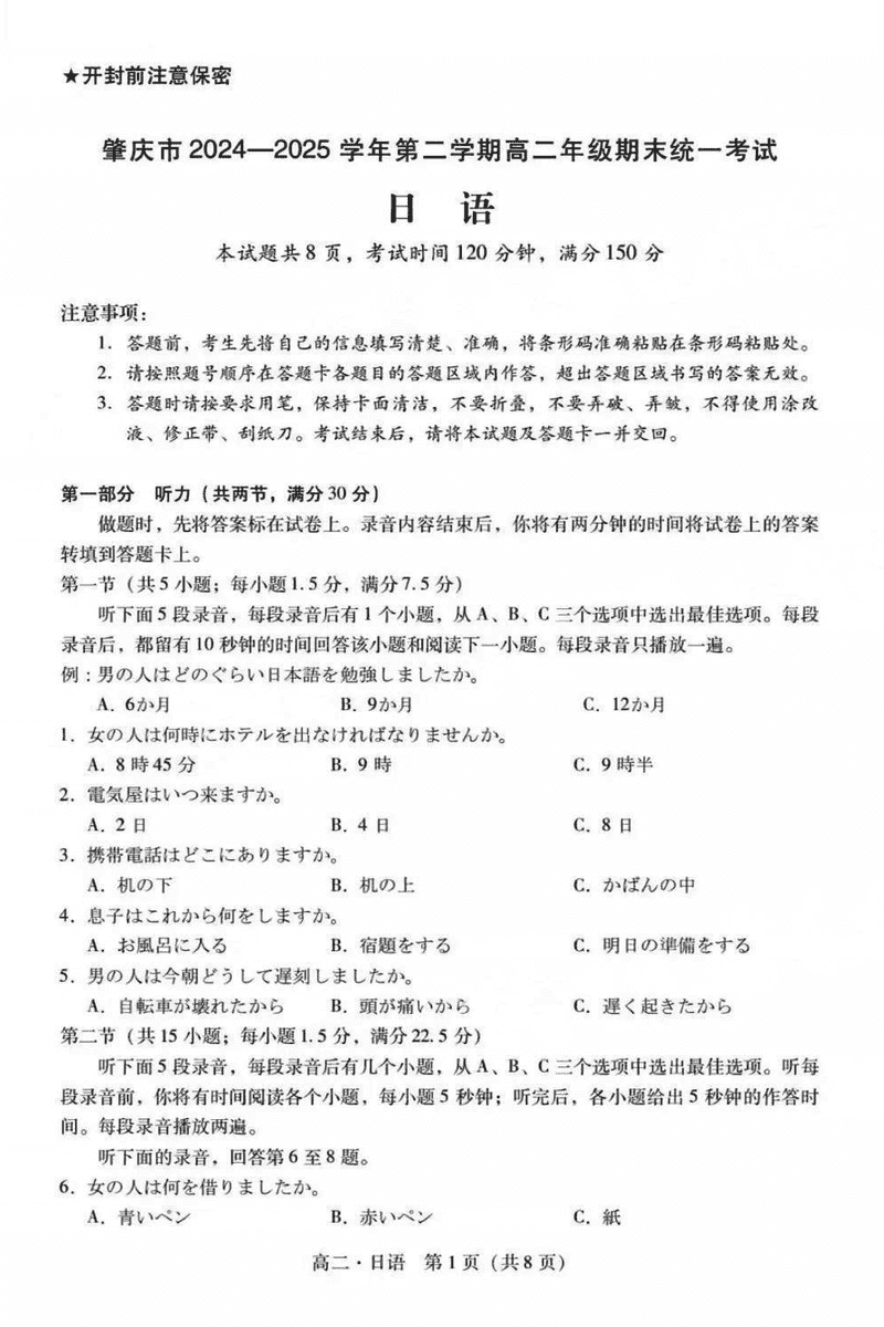 肇庆市2024-2025学年高二下学期期末日语试题及答案 时间:2025-07-10 广东 高中英语 广东省肇庆市2024-2025学年高二下学期期末日语考试已于近日开考,为方便考生考后及时查看考试情况,查漏补缺、弥补不足,本文整理了试题答案解析相关信息! 日语试题及答案解析