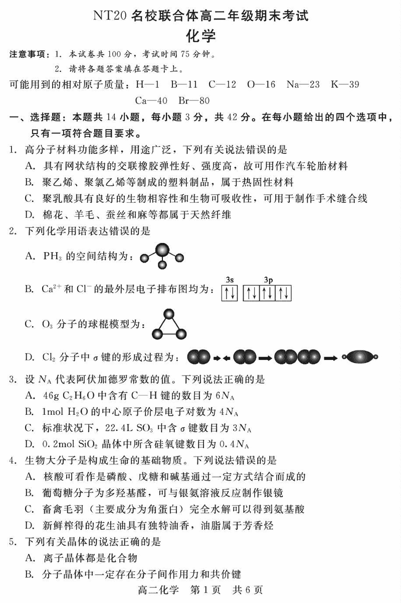 河北省NT20名校联合体2024-2025学年高二下学期7月期末化学考试已于近日开考,为方便考生考后及时查看考试情况,查漏补缺、弥补不足,本文整理了试题答案解析相关信息!