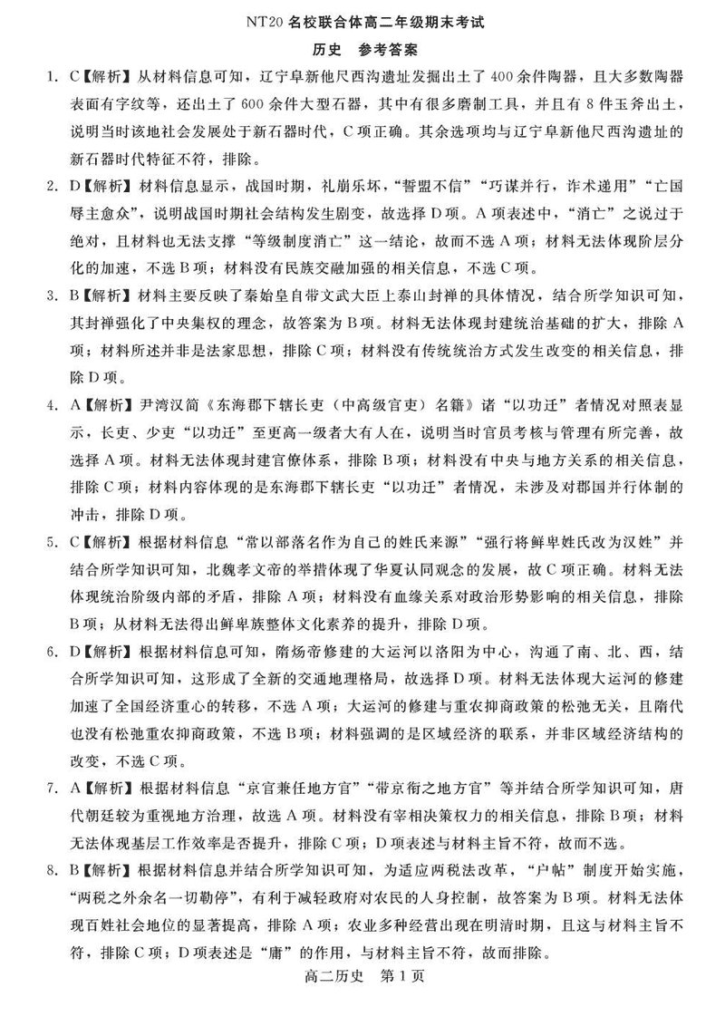 河北省NT20名校联合体2024-2025学年高二下学期7月期末历史考试已于近日开考,为方便考生考后及时查看考试情况,查漏补缺、弥补不足,本文整理了试题答案解析相关信息!
