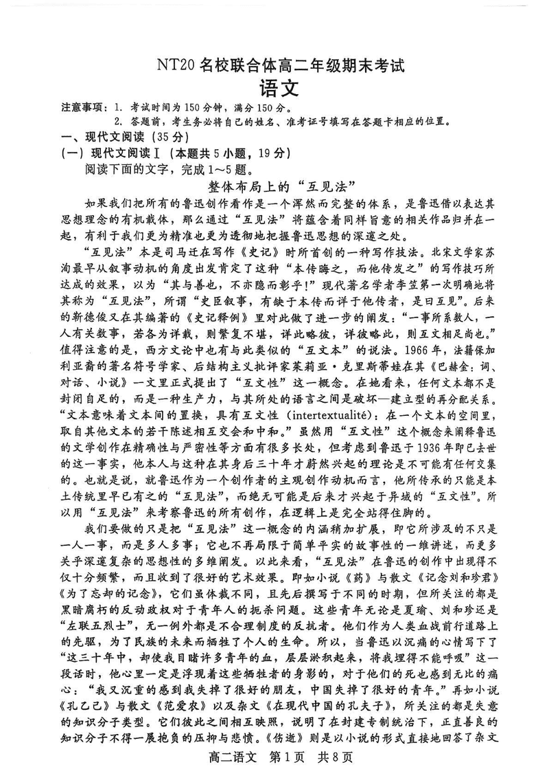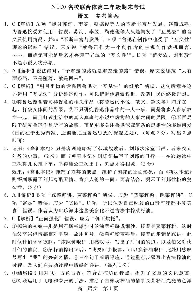 河北省NT20名校联合体2024-2025学年高二下学期7月期末语文考试已于近日开考,为方便考生考后及时查看考试情况,查漏补缺、弥补不足,本文整理了试题答案解析相关信息!