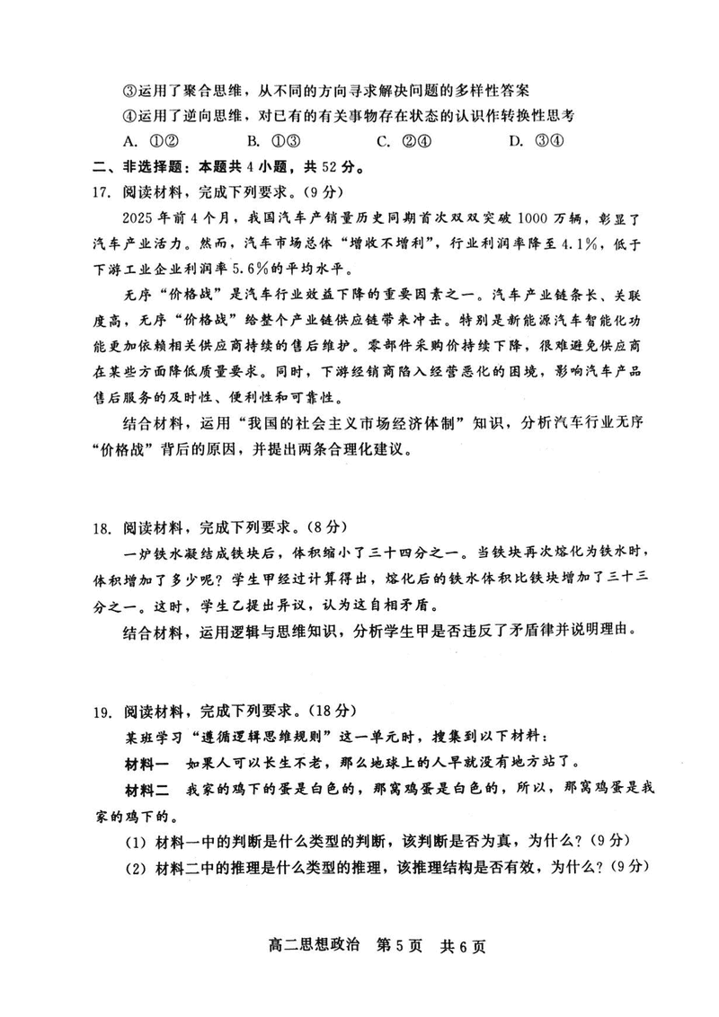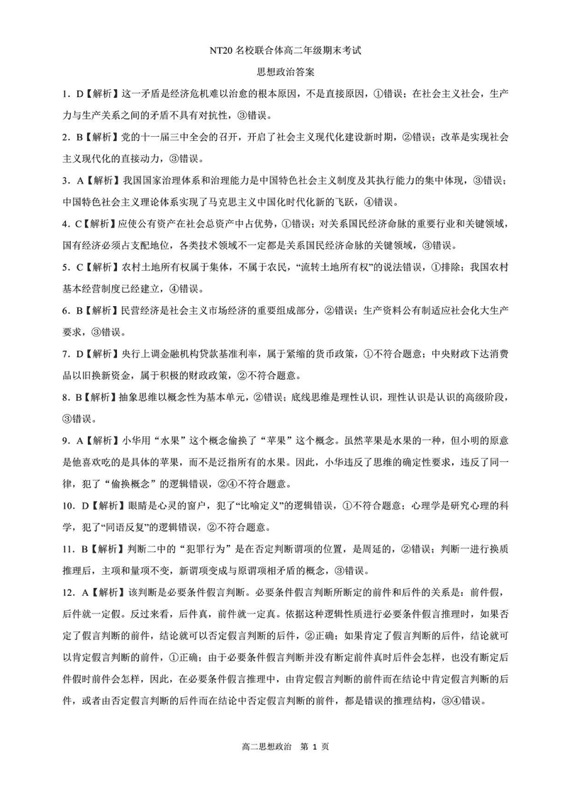 河北省NT20名校联合体2024-2025学年高二下学期7月期末政治试题及答案