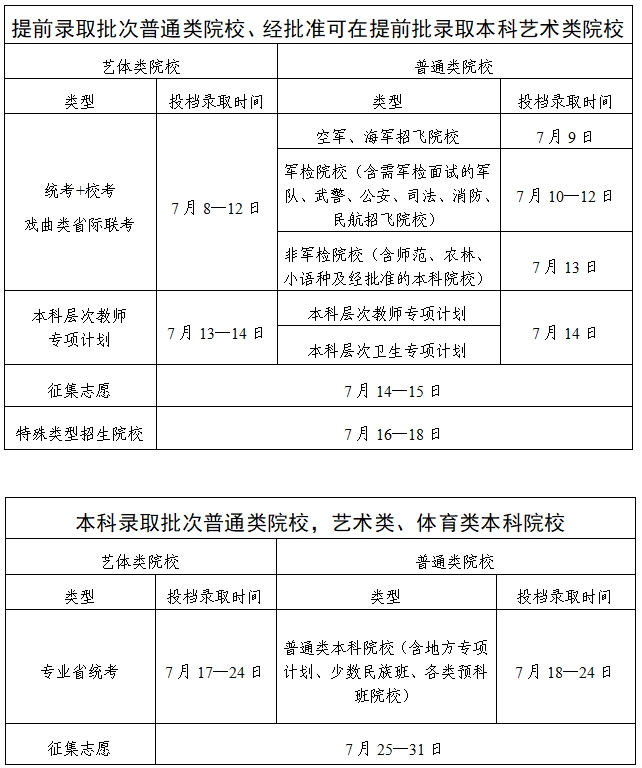注:招生录取工作日程表如有变动,请以省教育考试院官微官网相关通知为准