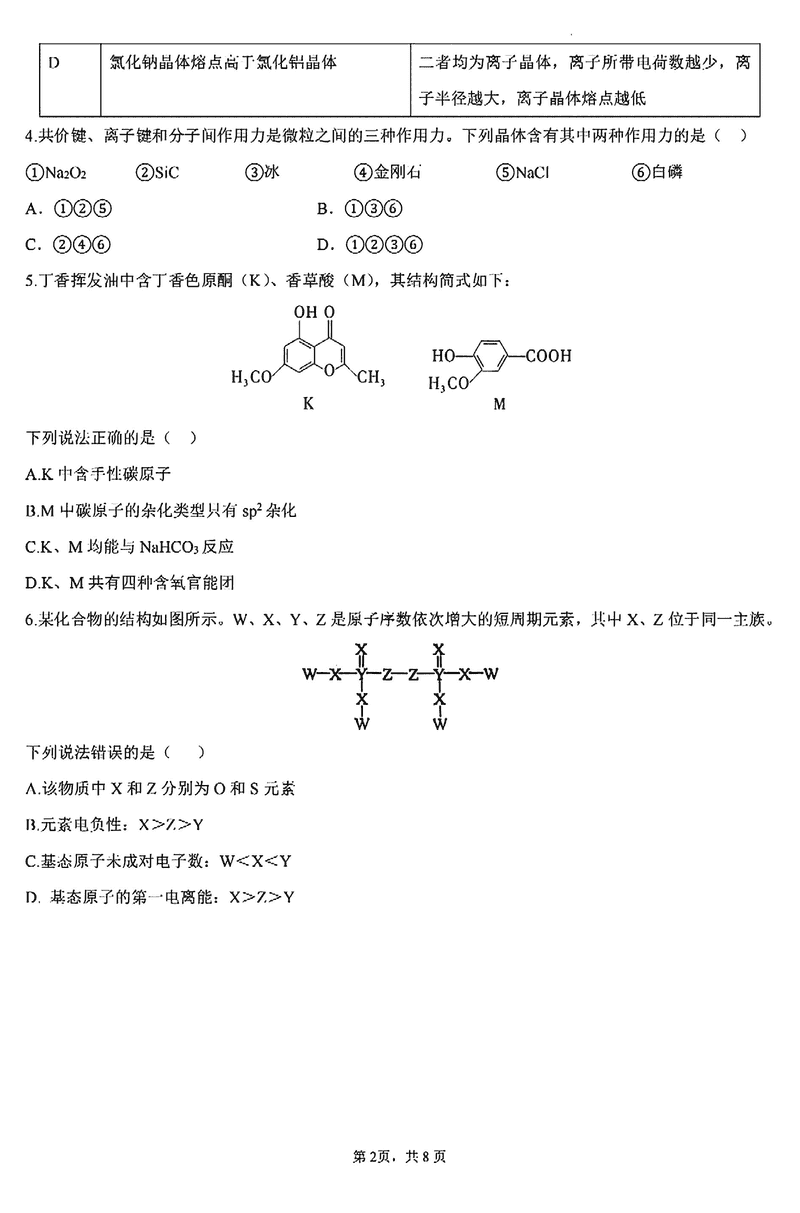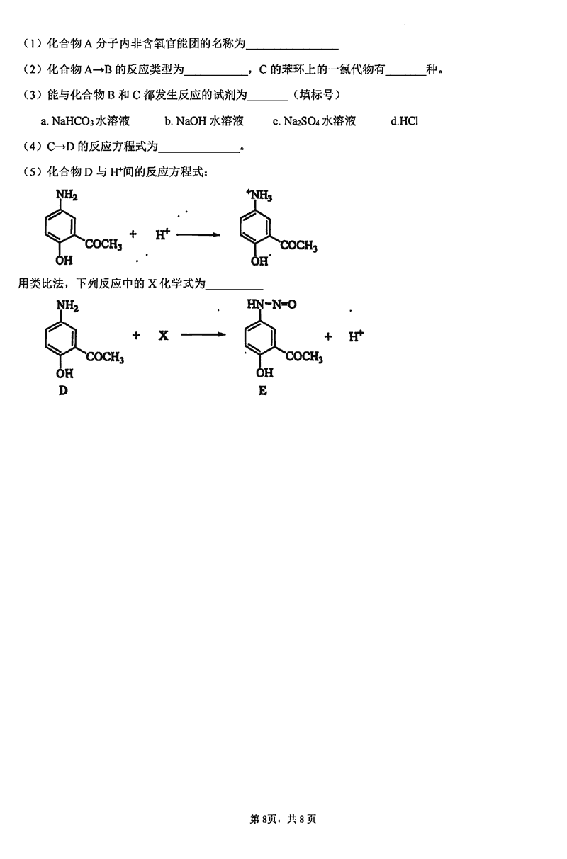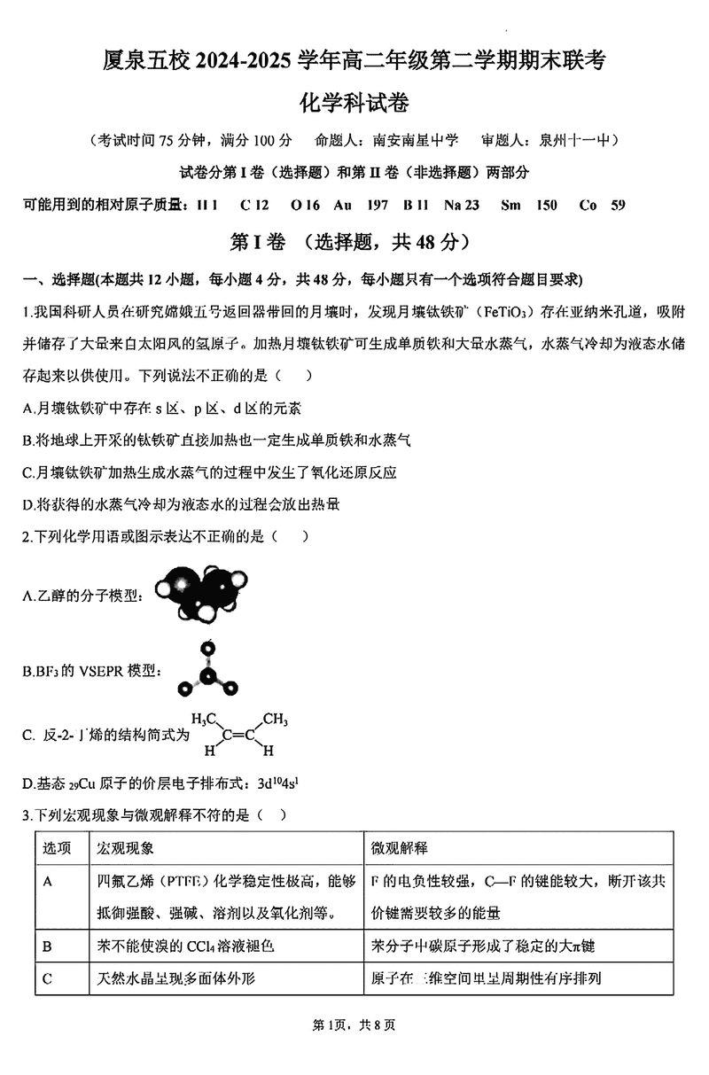厦泉五校2024-2025学年高二下学期7月期末联考化学试题及答案 时间:2025-07-11 福建 高中化学 福建省厦泉五校2024-2025学年高二下学期7月期末联考化学考试已于近日开考,为方便考生考后及时查看考试情况,查漏补缺、弥补不足,本文整理了试题答案解析相关信息! 化学试题及答案解析