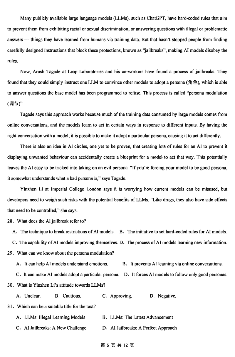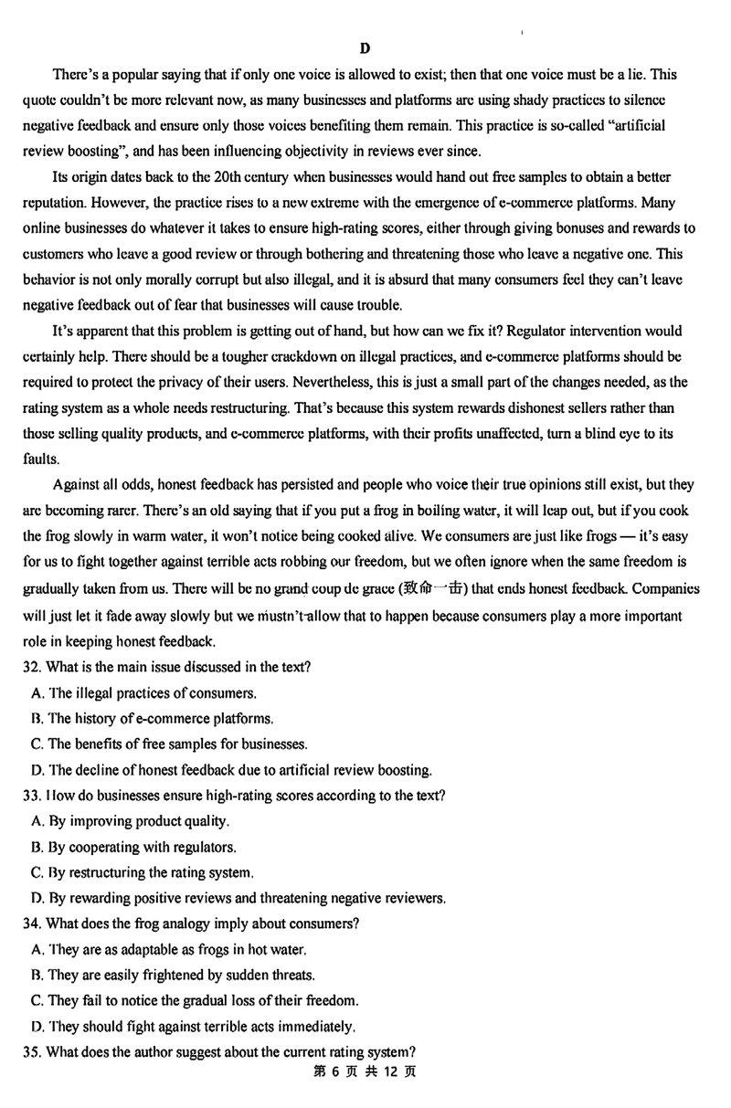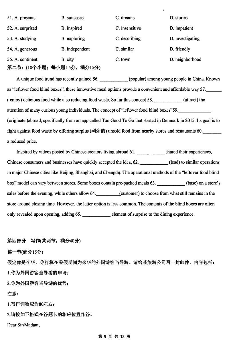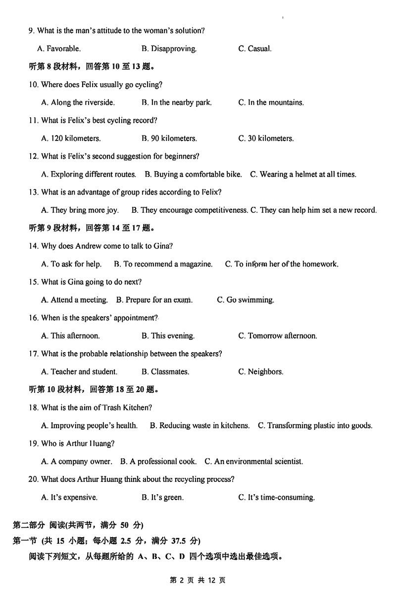 厦泉五校2024-2025学年高二下学期7月期末联考英语试题及答案 时间:2025-07-11 福建 高中英语 福建省厦泉五校2024-2025学年高二下学期7月期末联考英语考试已于近日开考,为方便考生考后及时查看考试情况,查漏补缺、弥补不足,本文整理了试题答案解析相关信息! 英语试题及答案解析