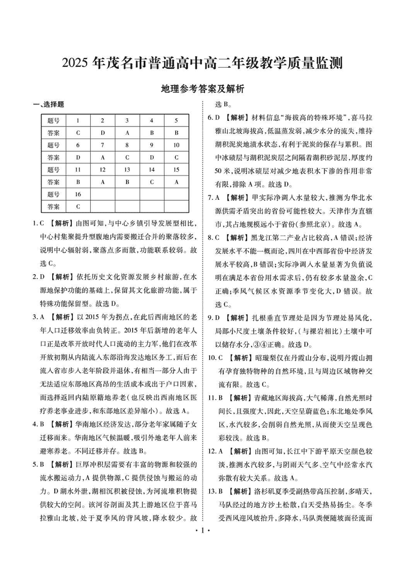 茂名市2025年高二下学期期末教学质量监测地理试题及答案 时间:2025-07-11 广东 高中地理 广东省茂名市2024-2025学年高二下学期期末教学质量监测地理考试已于近日开考,为方便考生考后及时查看考试情况,查漏补缺、弥补不足,本文整理了试题答案解析相关信息! 地理试题及答案解析