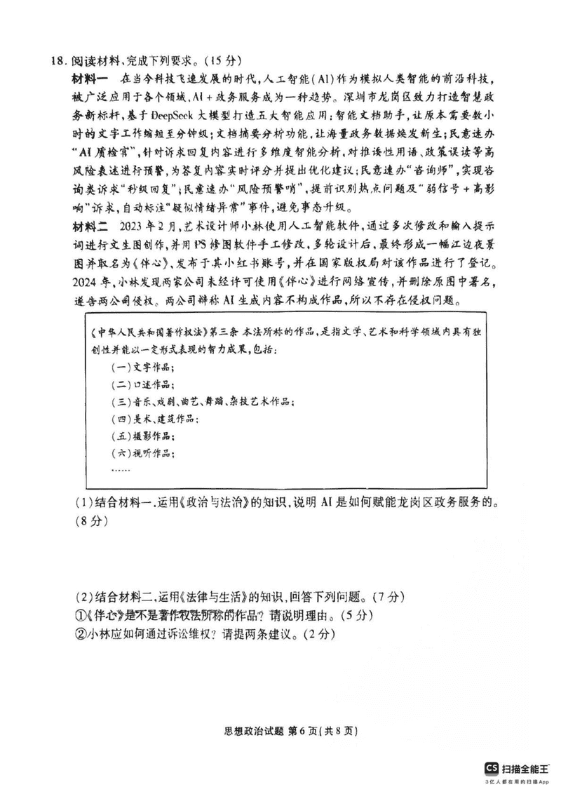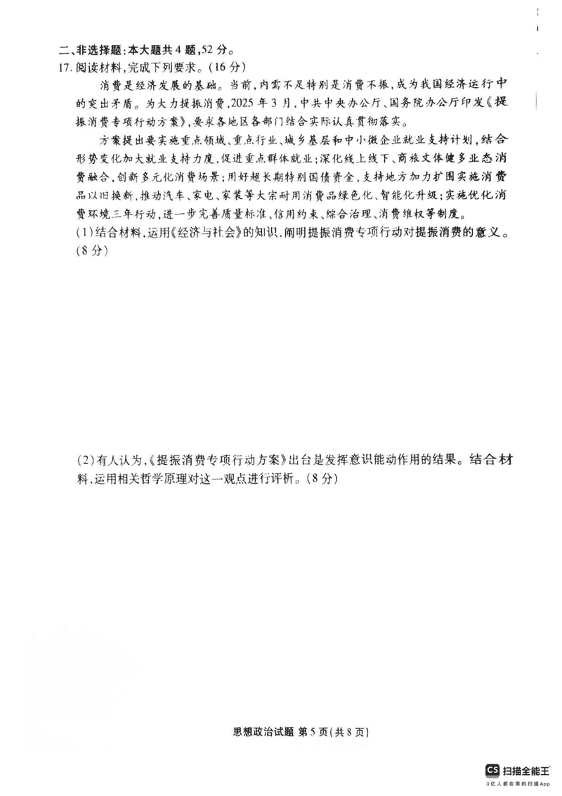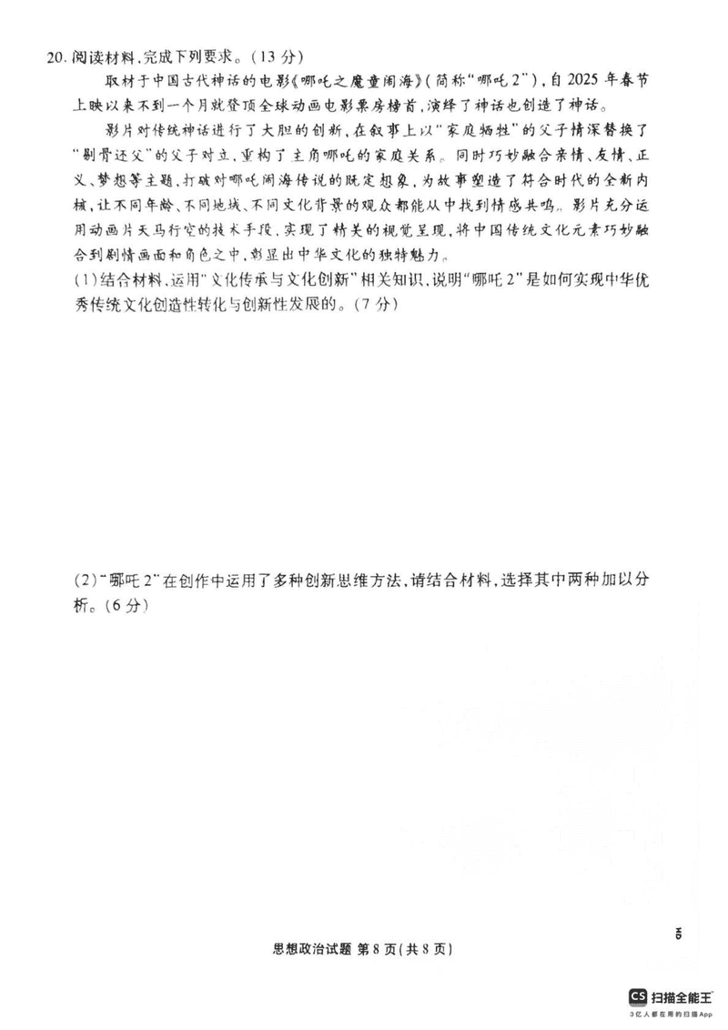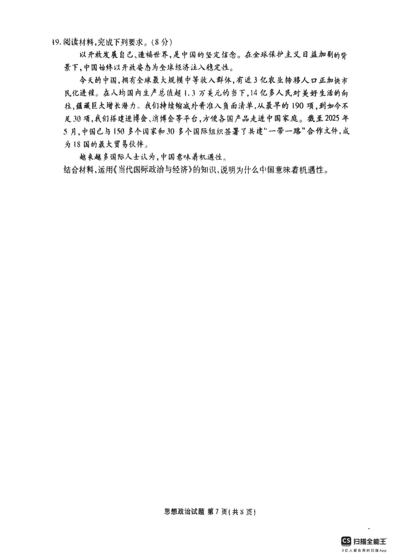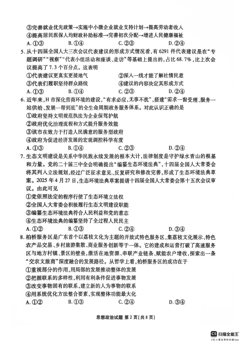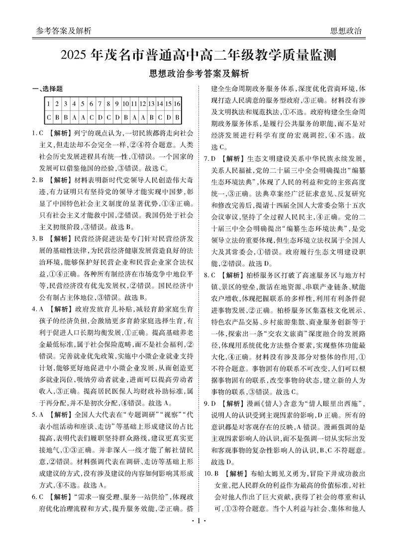 茂名市2025年高二下学期期末教学质量监测政治试题及答案 时间:2025-07-11 广东 高中政治 广东省茂名市2024-2025学年高二下学期期末教学质量监测政治考试已于近日开考,为方便考生考后及时查看考试情况,查漏补缺、弥补不足,本文整理了试题答案解析相关信息! 政治试题及答案解析
