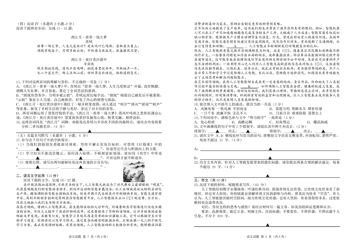 广安高三零诊2025年高2023级高二下学期期末语文试题及答案 时间:2025-07-11 四川 高中语文 四川省广安高三零诊2025年高2023级高二下学期期末语文考试已于近日开考,为方便考生考后及时查看考试情况,查漏补缺、弥补不足,本文整理了试题答案解析相关信息! 语文试题及答案解析