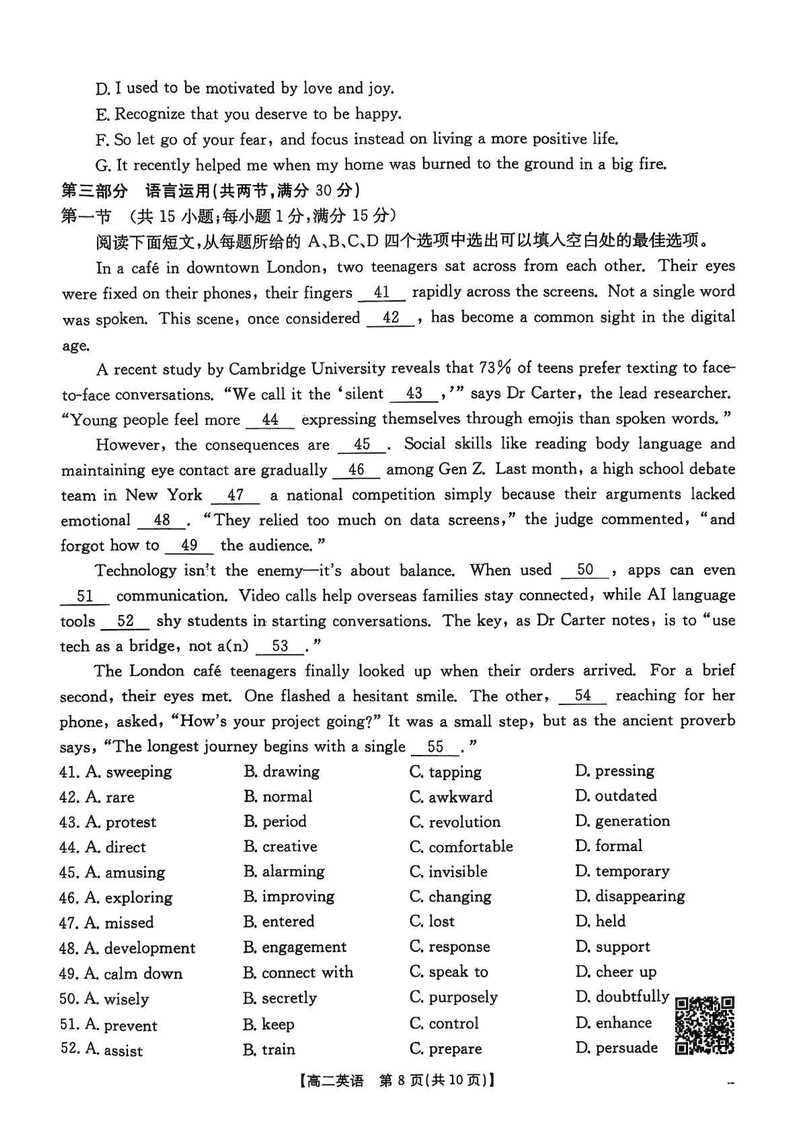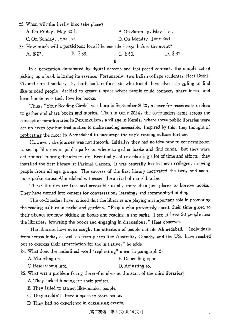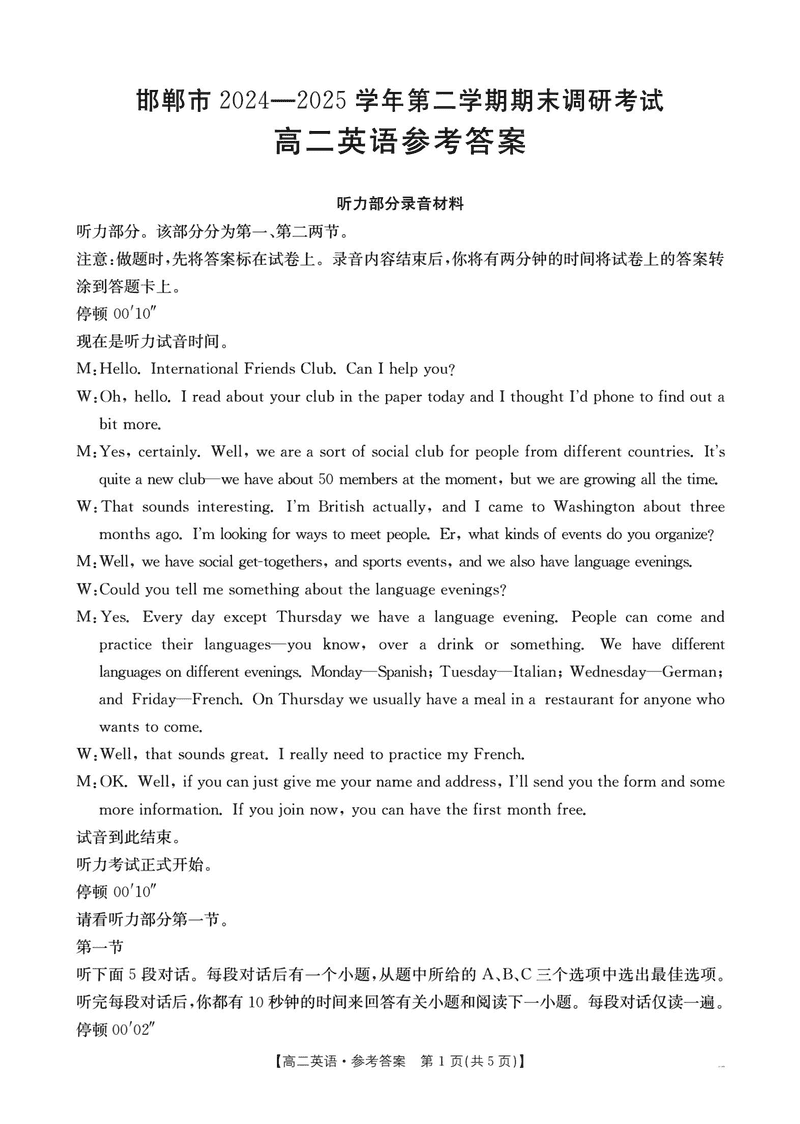 邯郸市2024-2025学年高二下学期期末英语试题及答案 时间:2025-07-11 河北 高中英语 河北省邯郸市2024-2025学年高二下学期期末调研英语考试已于近日开考,为方便考生考后及时查看考试情况,查漏补缺、弥补不足,本文整理了试题答案解析相关信息! 英语试题及答案解析