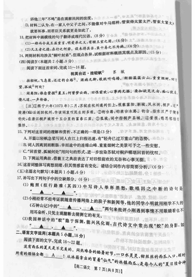 邯郸市2024-2025学年高二下学期期末语文试题及答案 时间:2025-07-11 河北 高中语文 河北省邯郸市2024-2025学年高二下学期期末调研语文考试已于近日开考,为方便考生考后及时查看考试情况,查漏补缺、弥补不足,本文整理了试题答案解析相关信息! 语文试题及答案解析