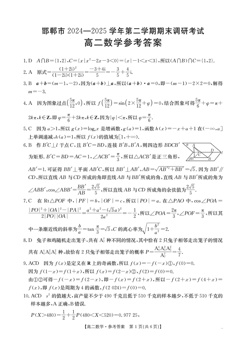 邯郸市2024-2025学年高二下学期期末数学试题及答案 时间:2025-07-11 河北 高中数学 河北省邯郸市2024-2025学年高二下学期期末调研数学考试已于近日开考,为方便考生考后及时查看考试情况,查漏补缺、弥补不足,本文整理了试题答案解析相关信息! 数学试题及答案解析