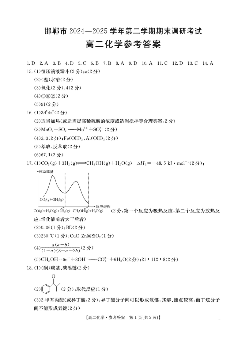 邯郸市2024-2025学年高二下学期期末化学试题及答案 时间:2025-07-11 河北 高中化学 河北省邯郸市2024-2025学年高二下学期期末调研化学考试已于近日开考,为方便考生考后及时查看考试情况,查漏补缺、弥补不足,本文整理了试题答案解析相关信息! 化学试题及答案解析