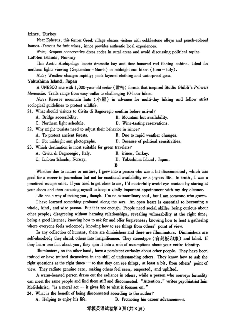 内江市2026届高三上学期零模英语试题及答案 时间:2025-07-13 四川 英语试题 四川内江市2026届高三上学期学期零模(高二下学期期末)英语考试已于近日开考,为方便考生考后及时查看考试情况,查漏补缺、弥补不足,本文整理了试题答案解析相关信息! 汇总:内江市2026届高三上学期学期零模试题及答案汇总 英语试题及答案解析