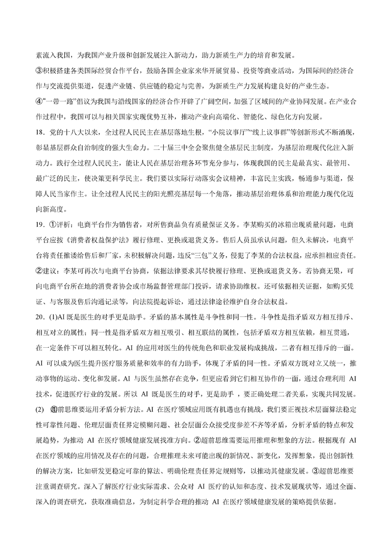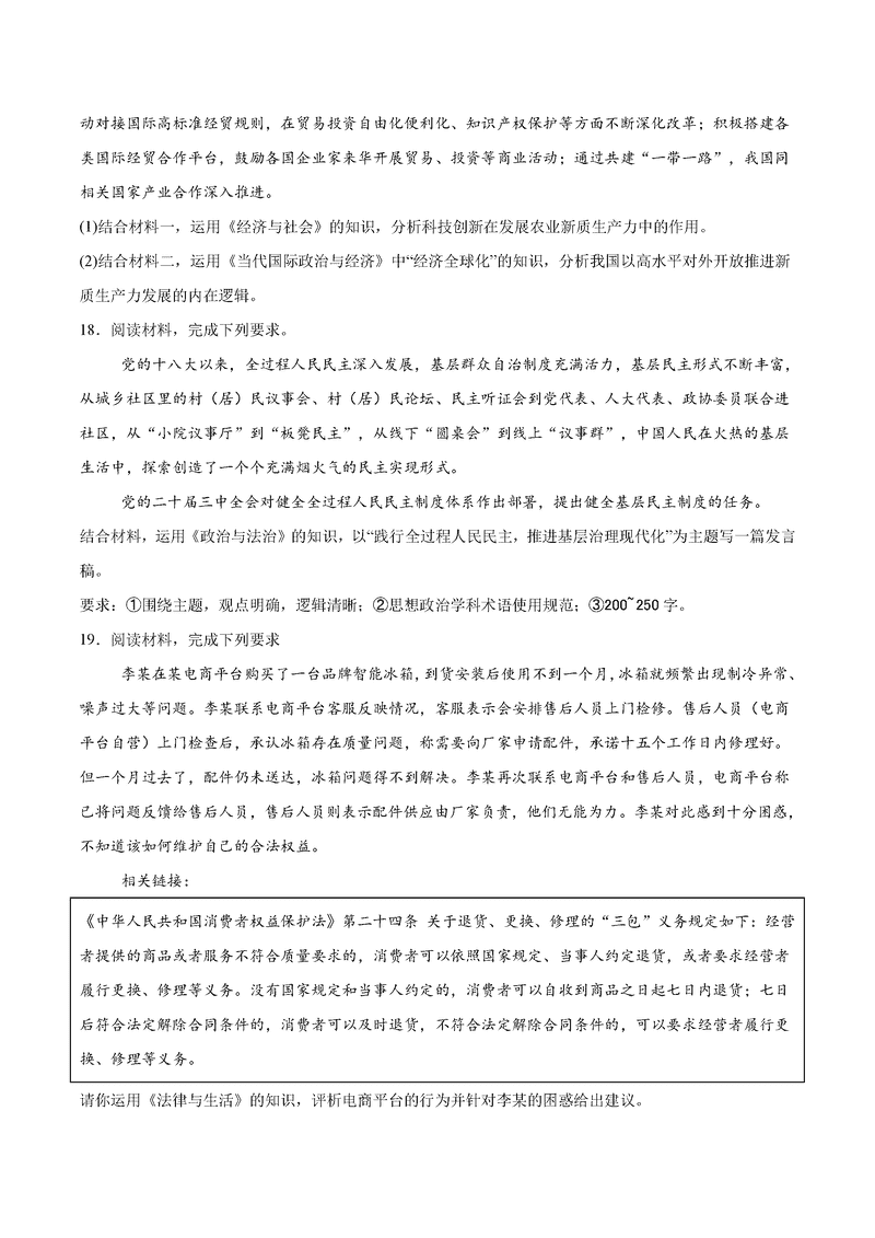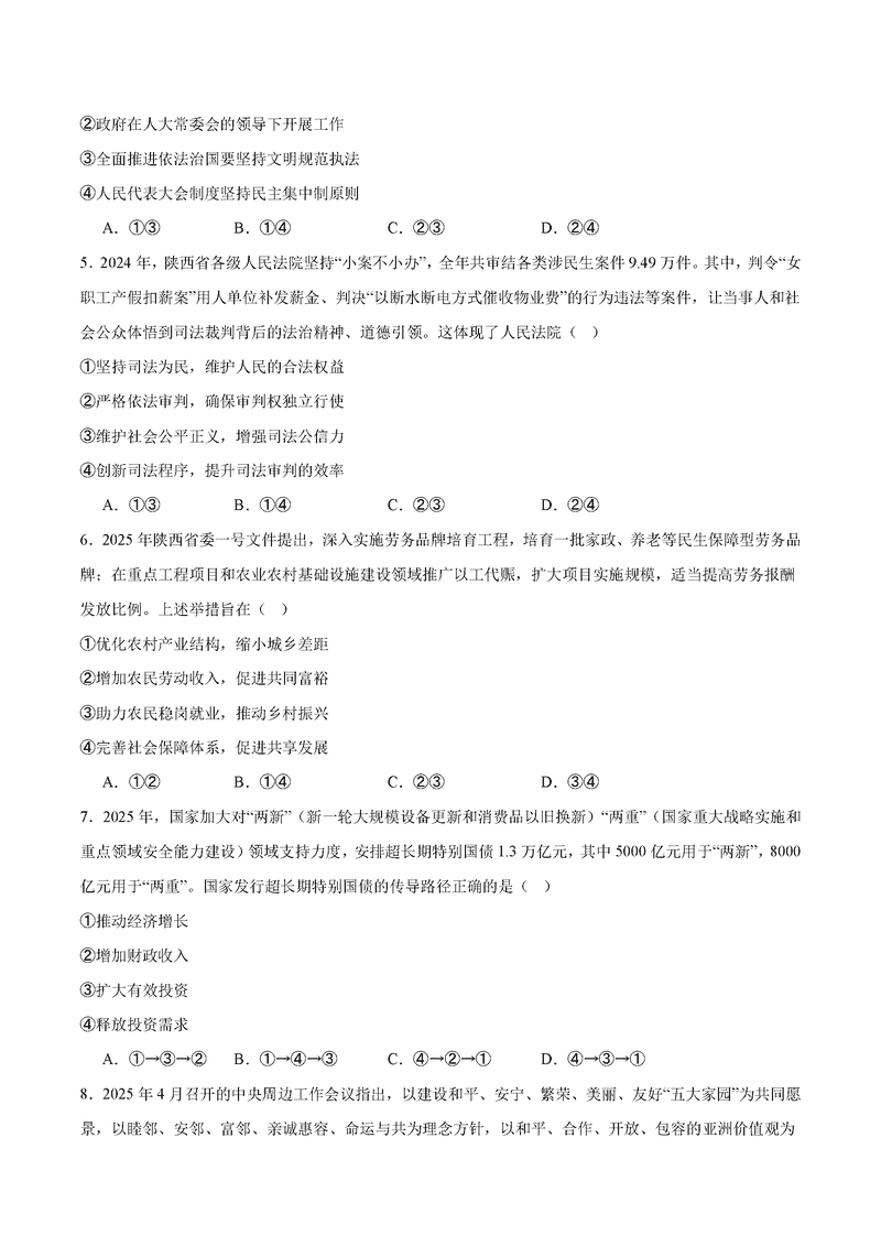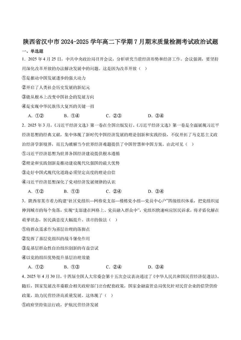陕西汉中2024-2025学年高二下学期期末政治试题及答案
