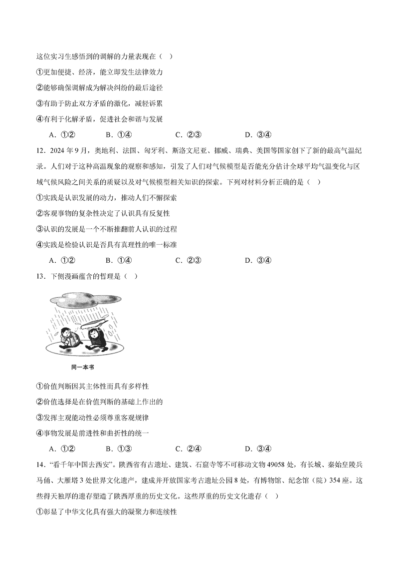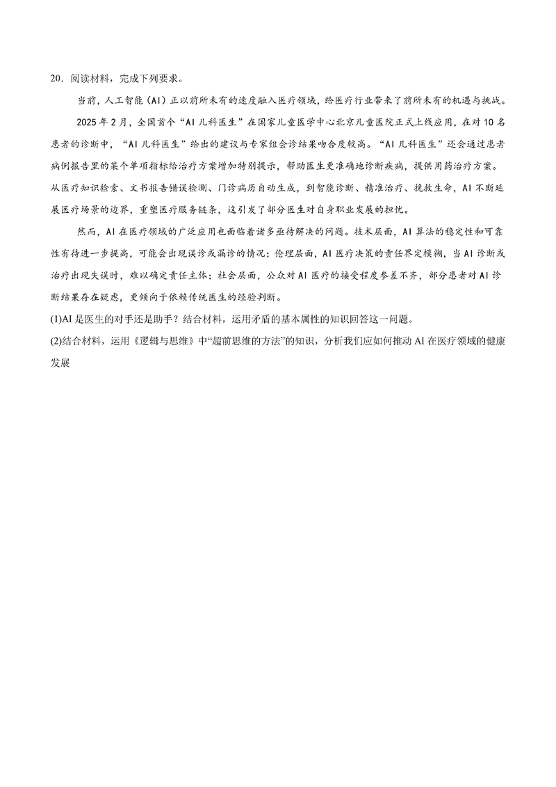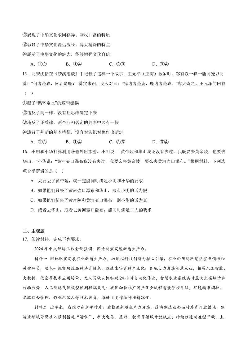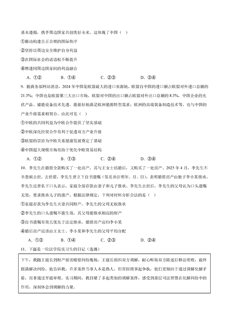 陕西汉中2024-2025学年高二下学期期末政治试题及答案