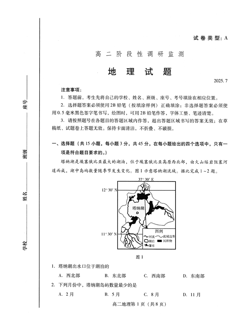 山东潍坊2026届高二阶段性调研监测地理试题及答案 时间:2025-07-13 山东 文综试题 山东省潍坊市2026届高二阶段性调研监测(高二下学期期末)地理考试已于近日开考,为方便考生考后及时查看考试情况,查漏补缺、弥补不足,本文整理了试题答案解析相关信息! 汇总:山东潍坊2026届高二阶段性调研监测试题及答案汇总 地理试题及答案解析
