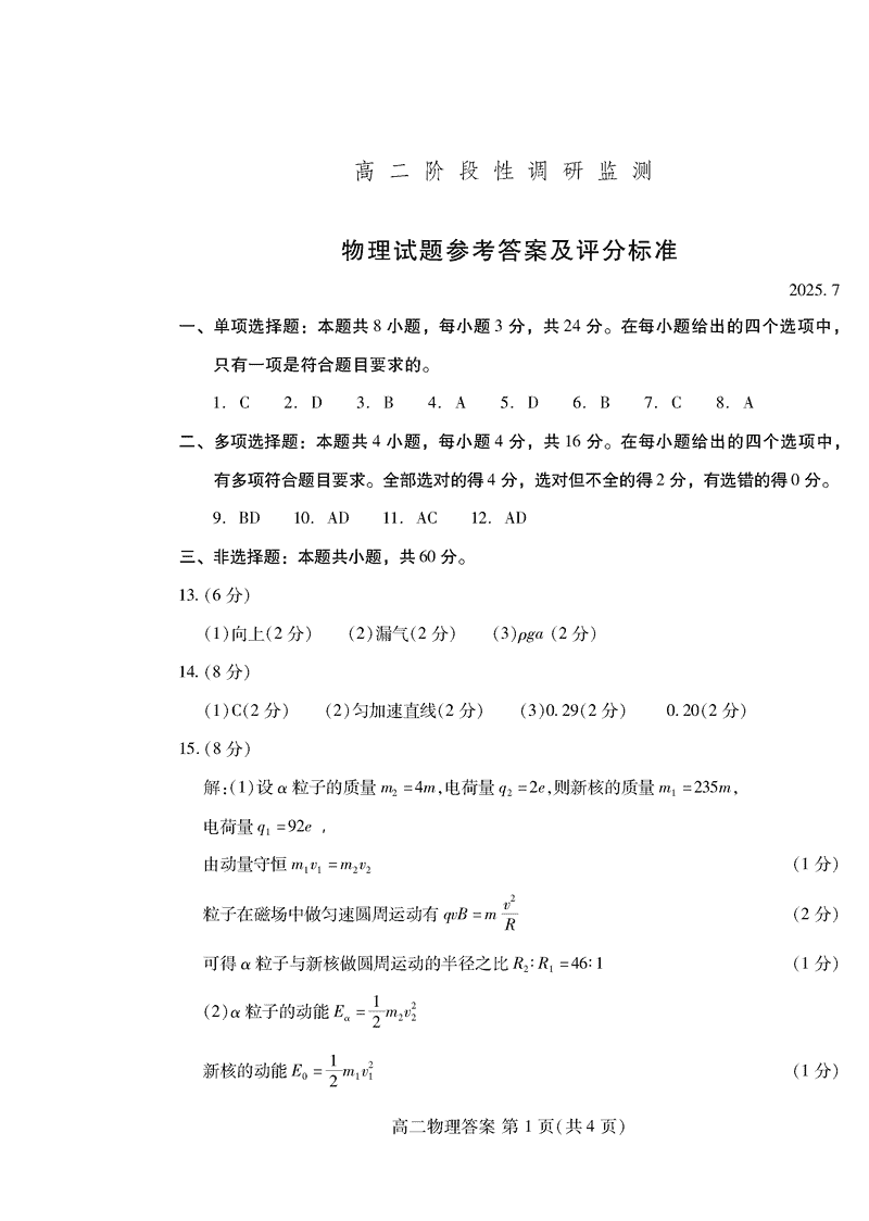 山东潍坊2026届高二阶段性调研监测物理试题及答案 时间:2025-07-13 山东 理综试题 山东省潍坊市2026届高二阶段性调研监测(高二下学期期末)物理考试已于近日开考,为方便考生考后及时查看考试情况,查漏补缺、弥补不足,本文整理了试题答案解析相关信息! 汇总:山东潍坊2026届高二阶段性调研监测试题及答案汇总 物理试题及答案解析