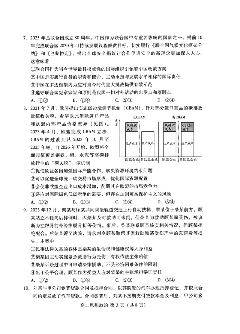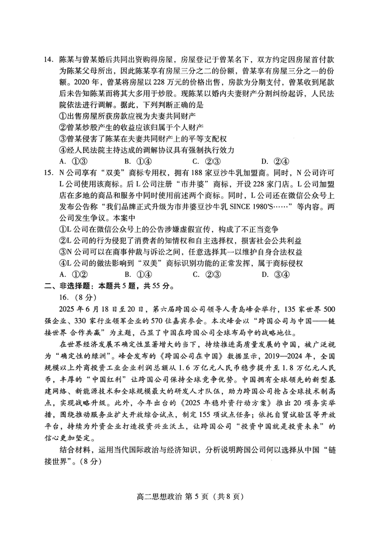 山东潍坊2026届高二阶段性调研监测政治试题及答案 时间:2025-07-13 山东 文综试题 山东省潍坊市2026届高二阶段性调研监测(高二下学期期末)政治考试已于近日开考,为方便考生考后及时查看考试情况,查漏补缺、弥补不足,本文整理了试题答案解析相关信息! 汇总:山东潍坊2026届高二阶段性调研监测试题及答案汇总 政治试题及答案解析