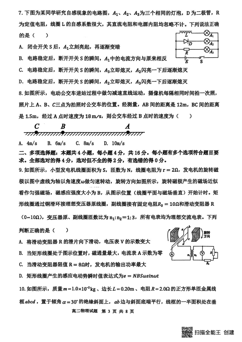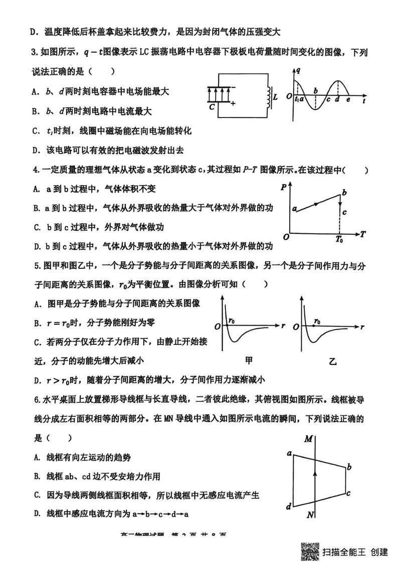 山东东营2024-2025学年高二下学期期末物理试题及答案