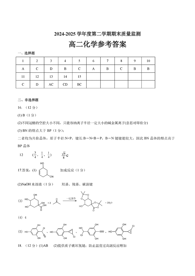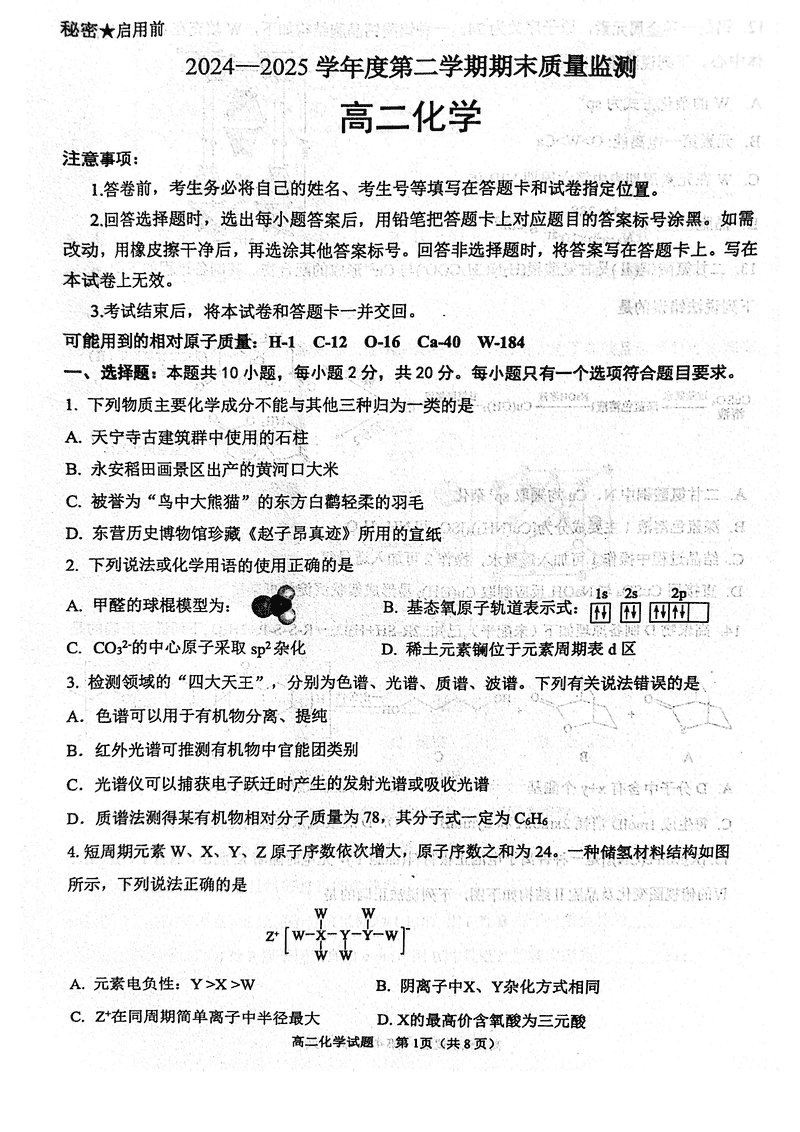 山东省东营市2024-2025学年高二下学期期末质量监测化学考试已于近日开考,为方便考生考后及时查看考试情况,查漏补缺、弥补不足,本文整理了试题答案解析相关信息!