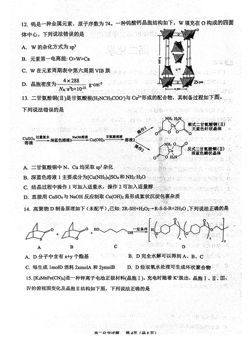 山东东营2024-2025学年高二下学期期末化学试题及答案