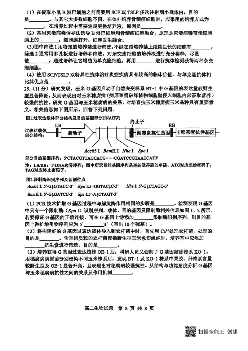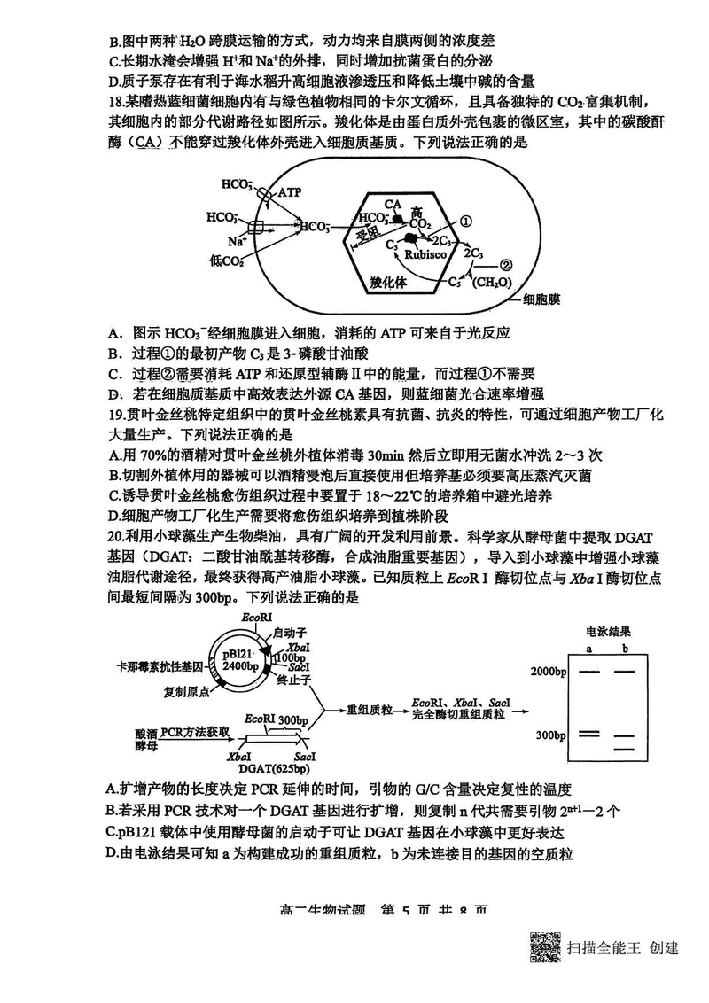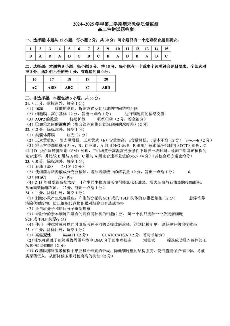 山东东营2024-2025学年高二下学期期末生物试题及答案