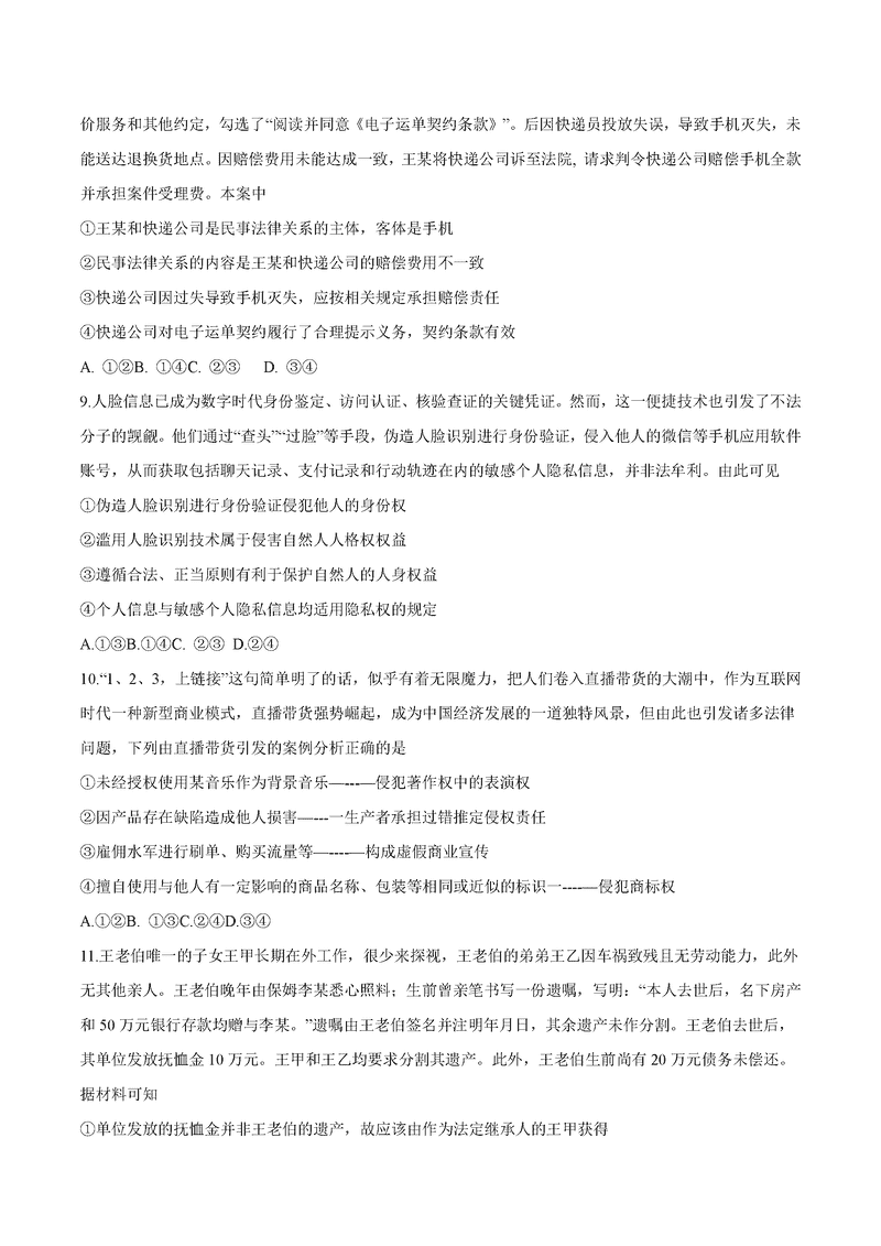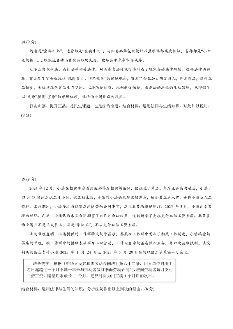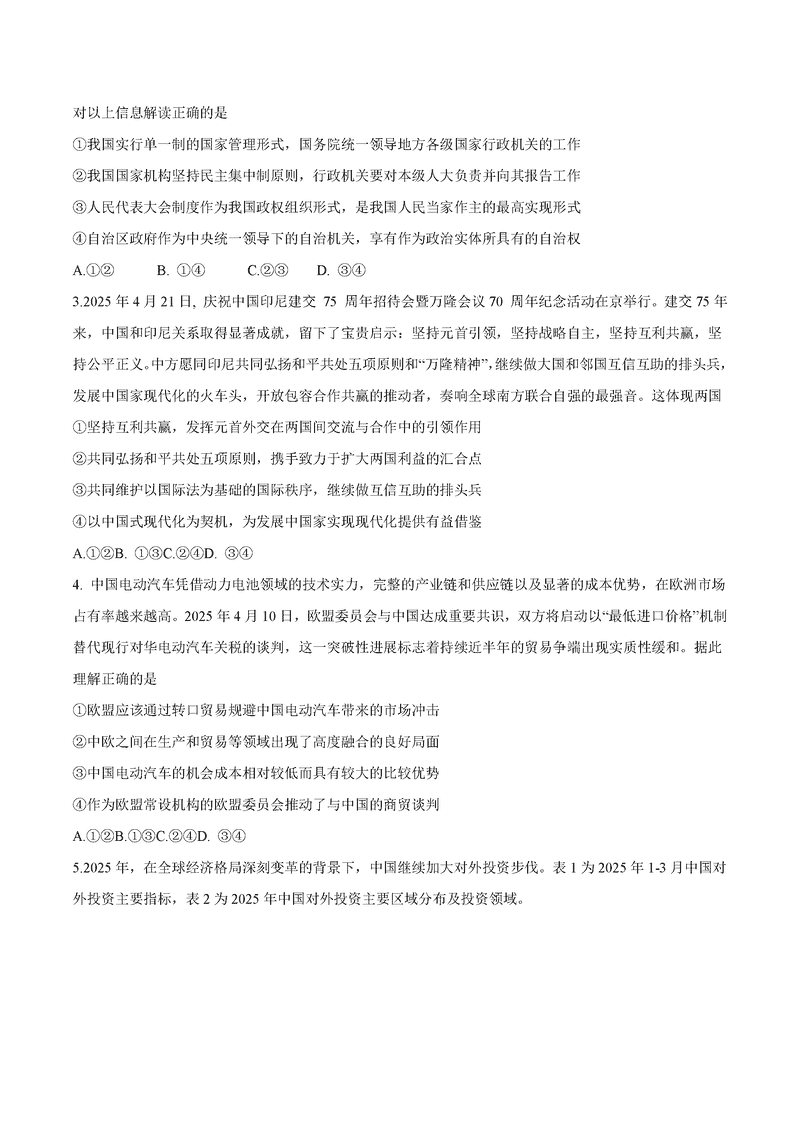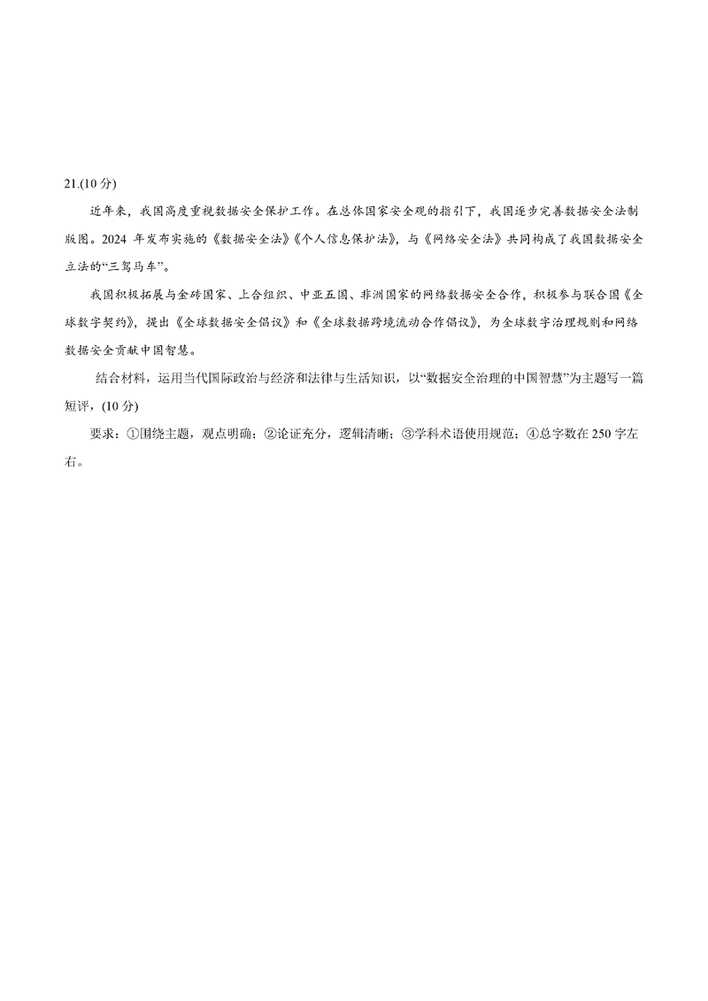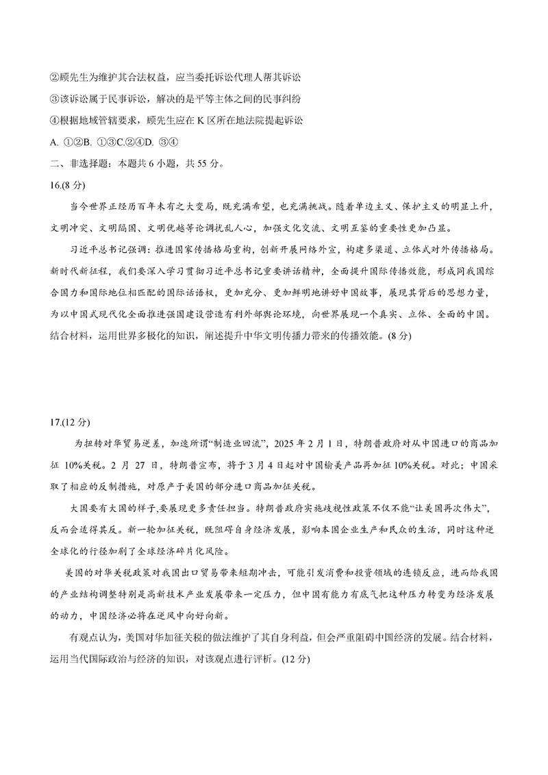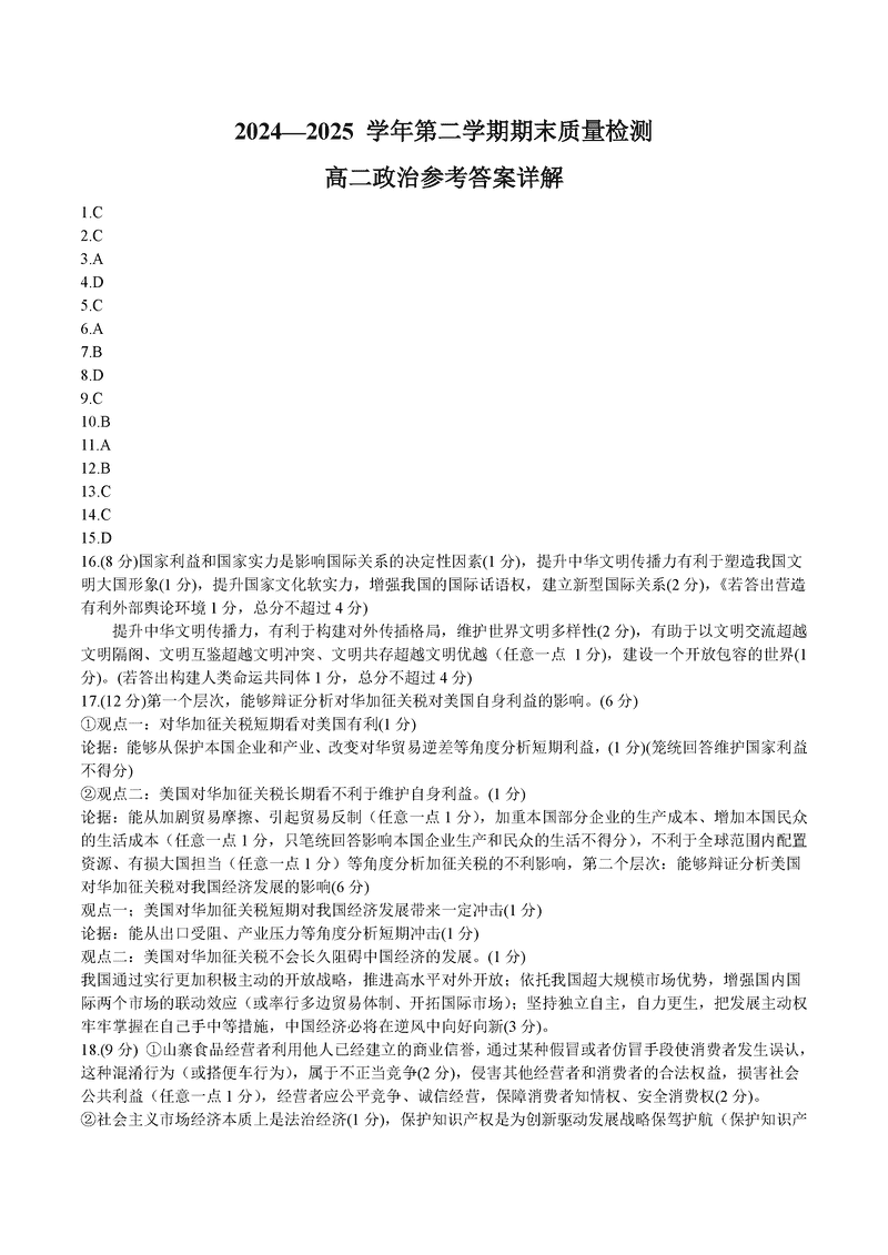 山东东营2024-2025学年高二下学期期末政治试题及答案