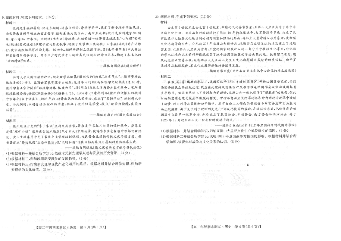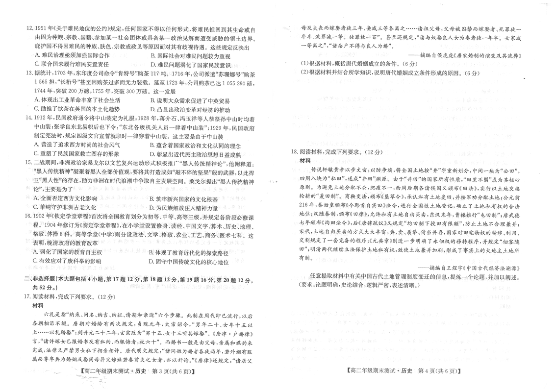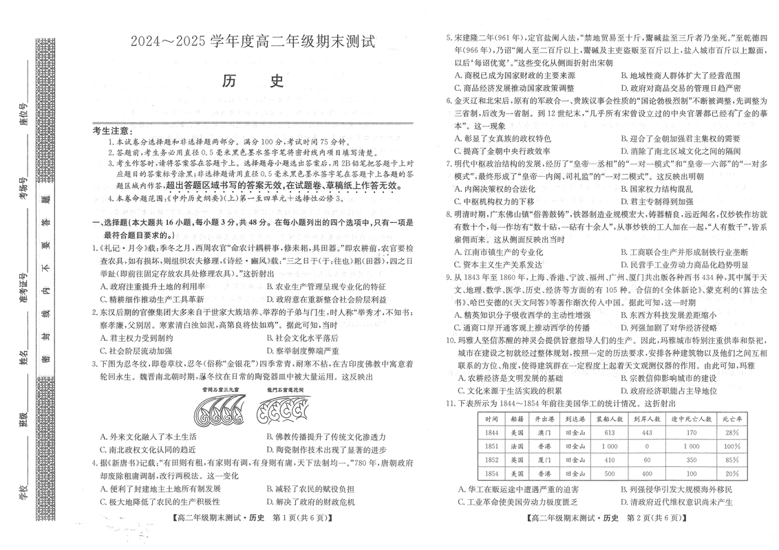 河北卓越联盟2024-2025学年度高二期末历史试题及答案