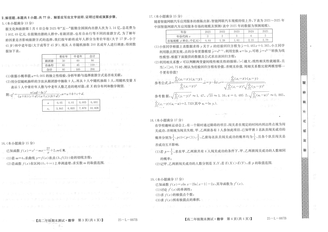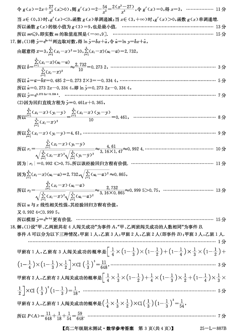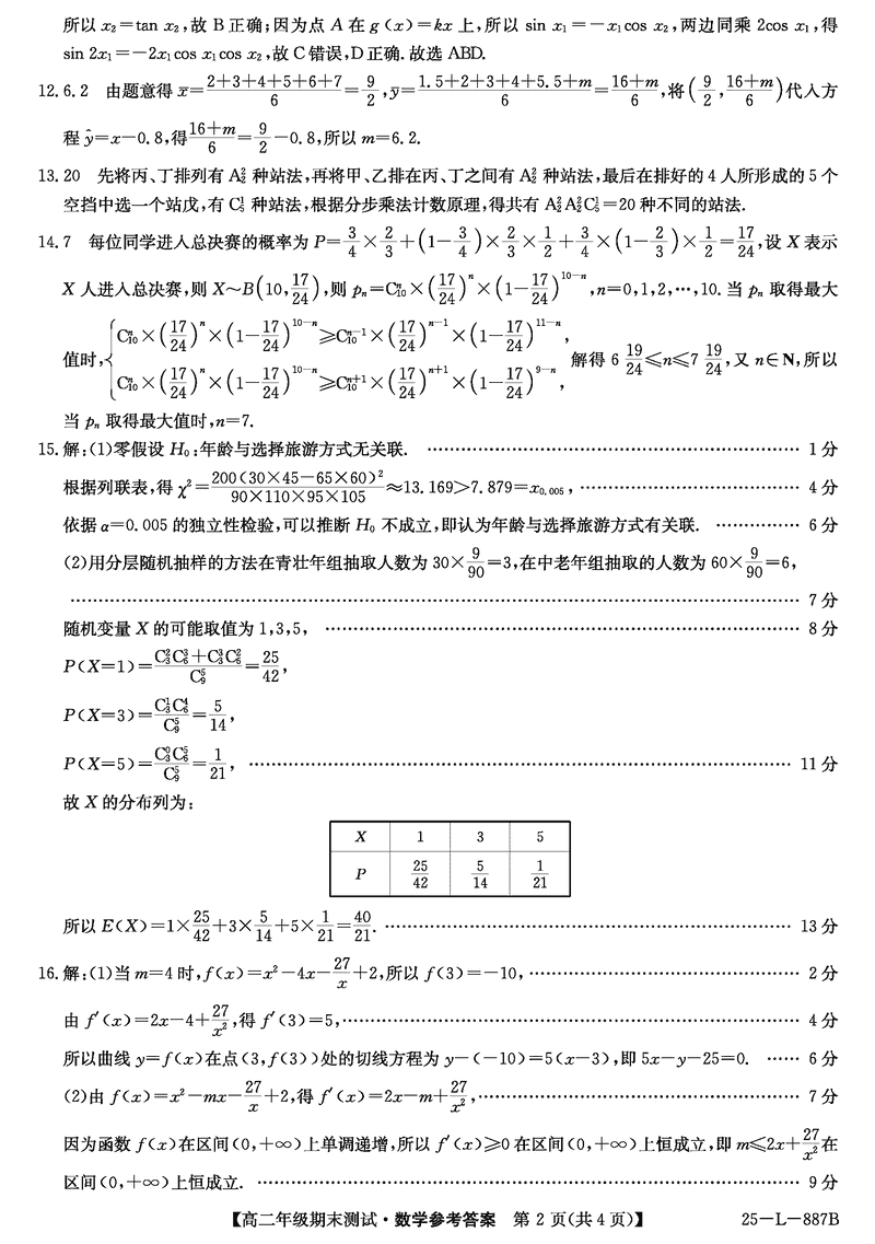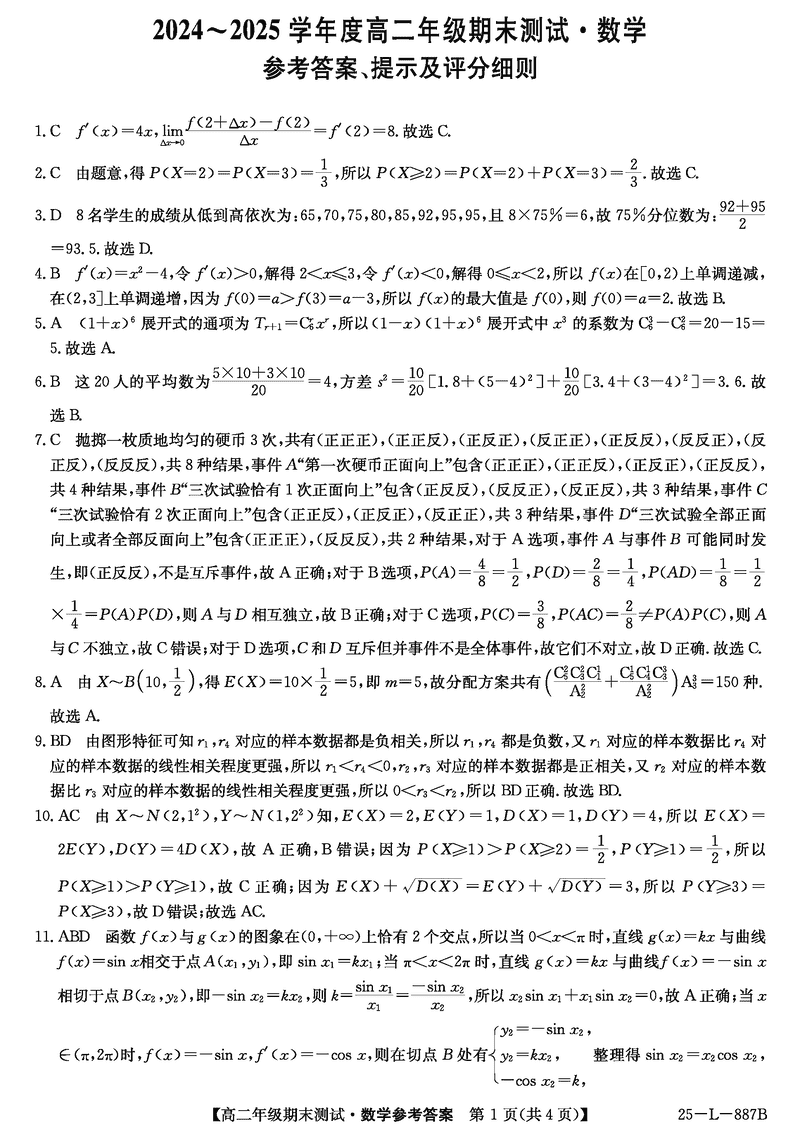 河北卓越联盟2024-2025学年度高二期末数学试题及答案