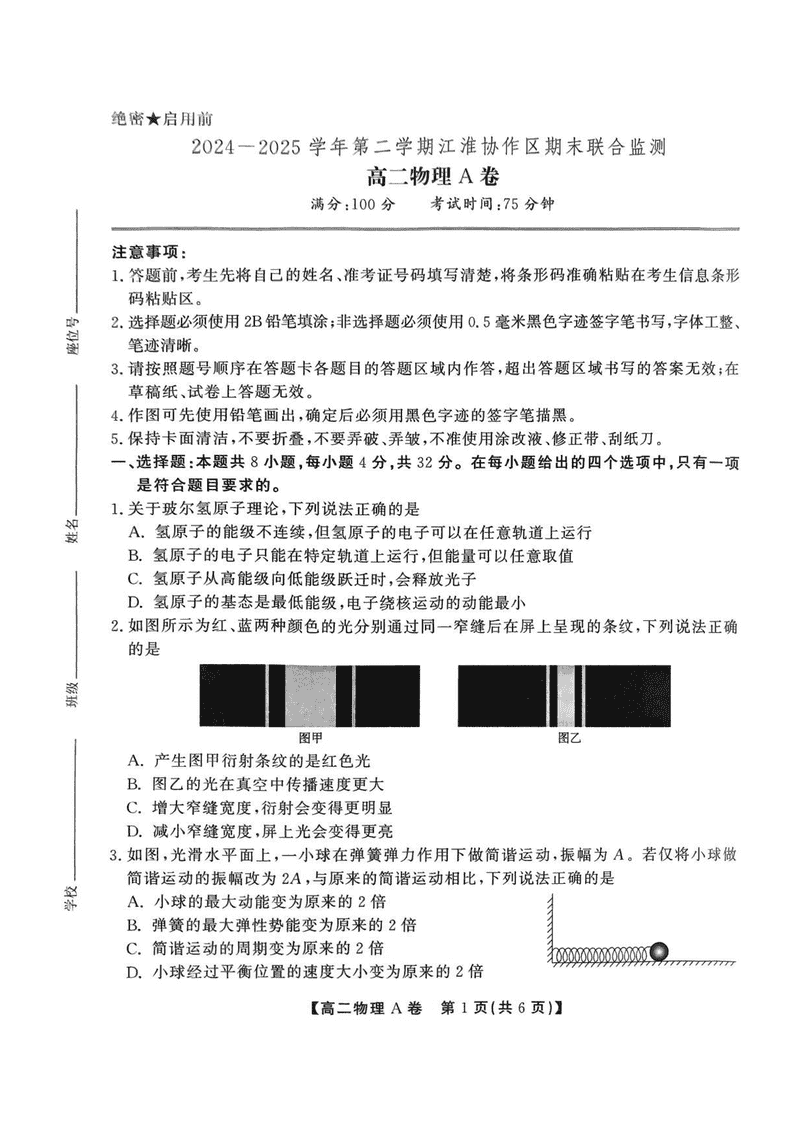 安徽省江淮协作区2024-2025学年高二下学期期末联合监测物理考试已于近日开考,为方便考生考后及时查看考试情况,查漏补缺、弥补不足,本文整理了试题答案解析相关信息!