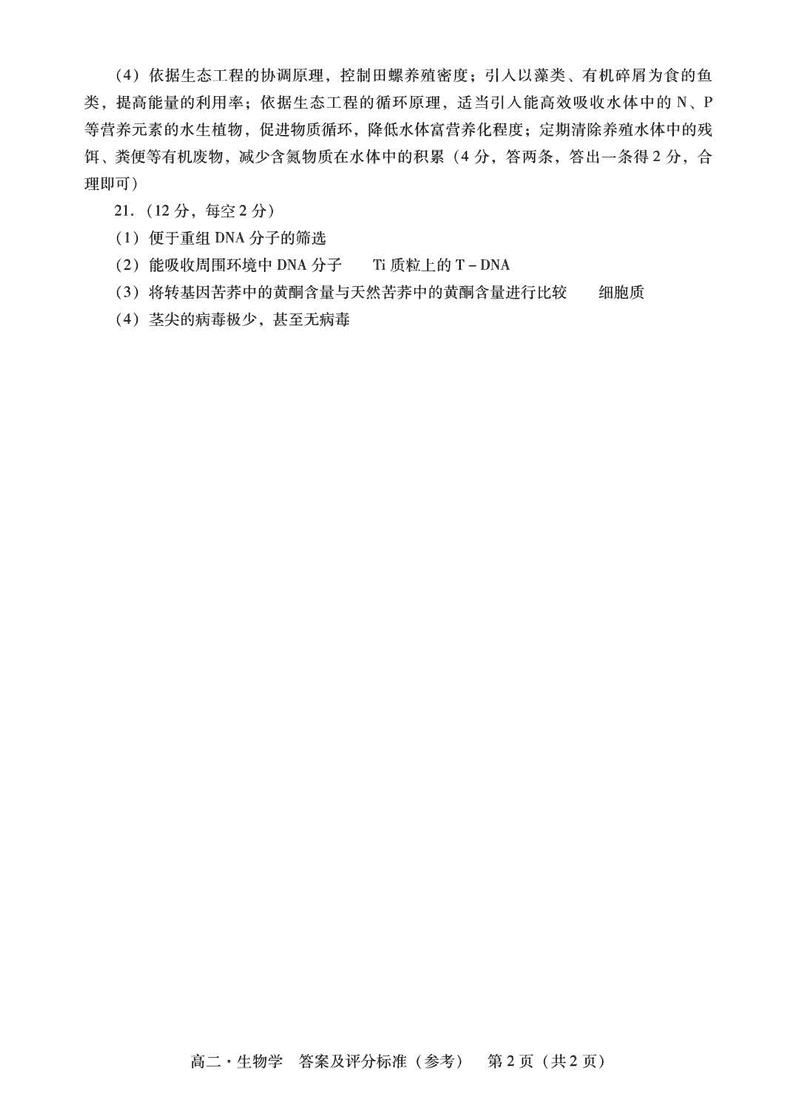 揭阳市2024-2025学年高二下学期期末生物试题及答案
