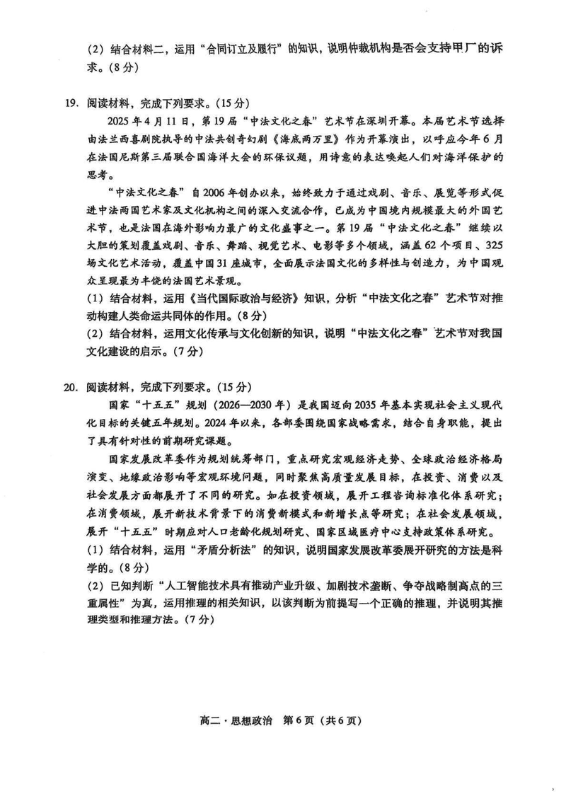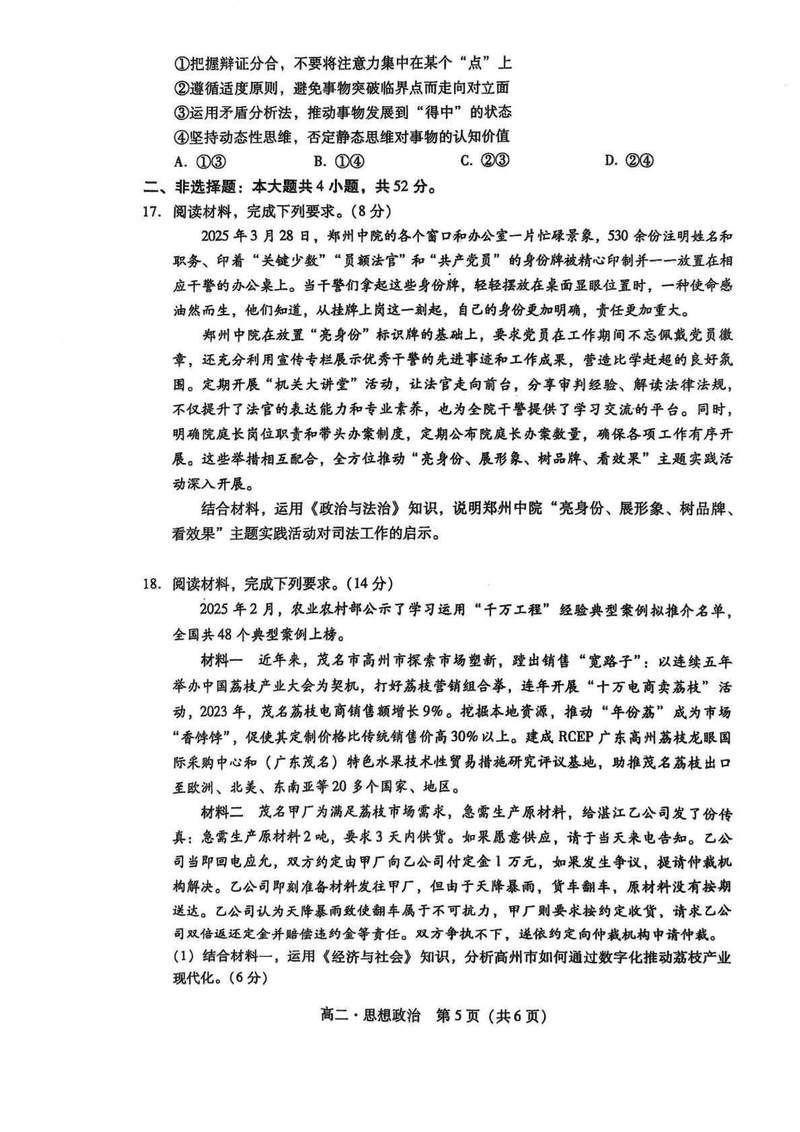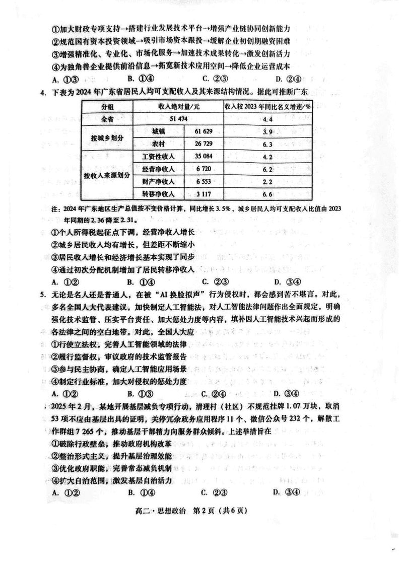 揭阳市2024-2025学年高二下学期期末政治试题及答案
