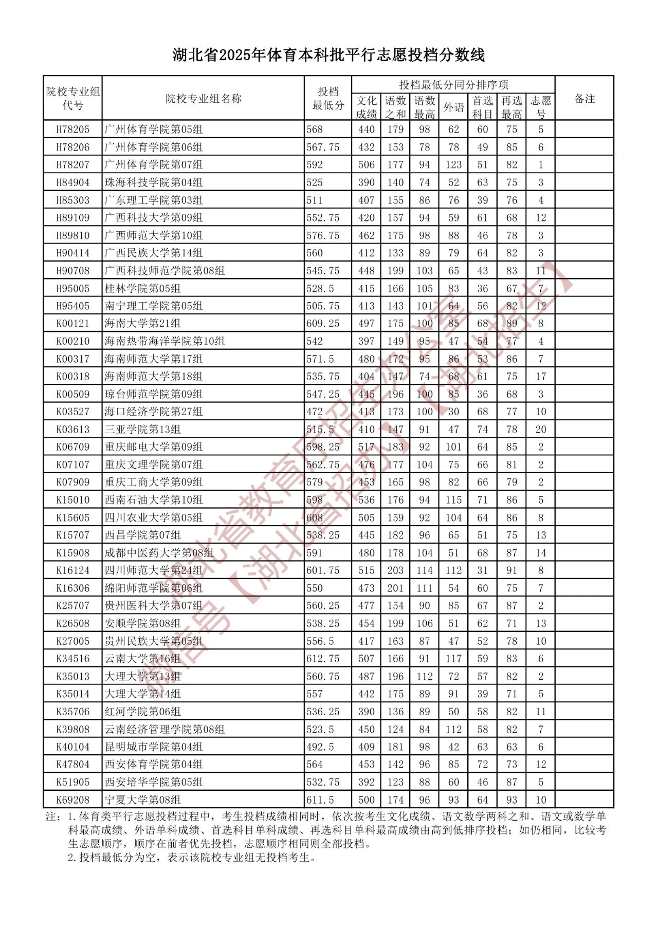 湖南2025本科提前批(军事院校、公安院校)征集志愿投档线公布