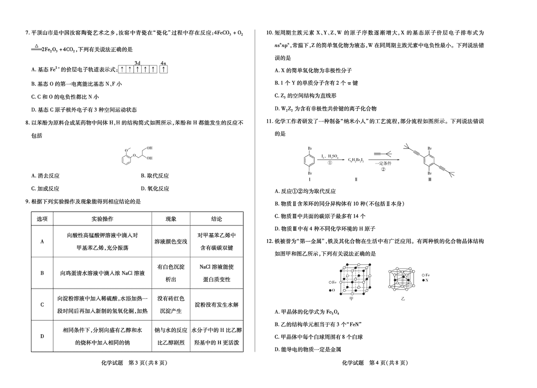 天一大联考·河南省2024-2025高二下学期期末化学试题及答案