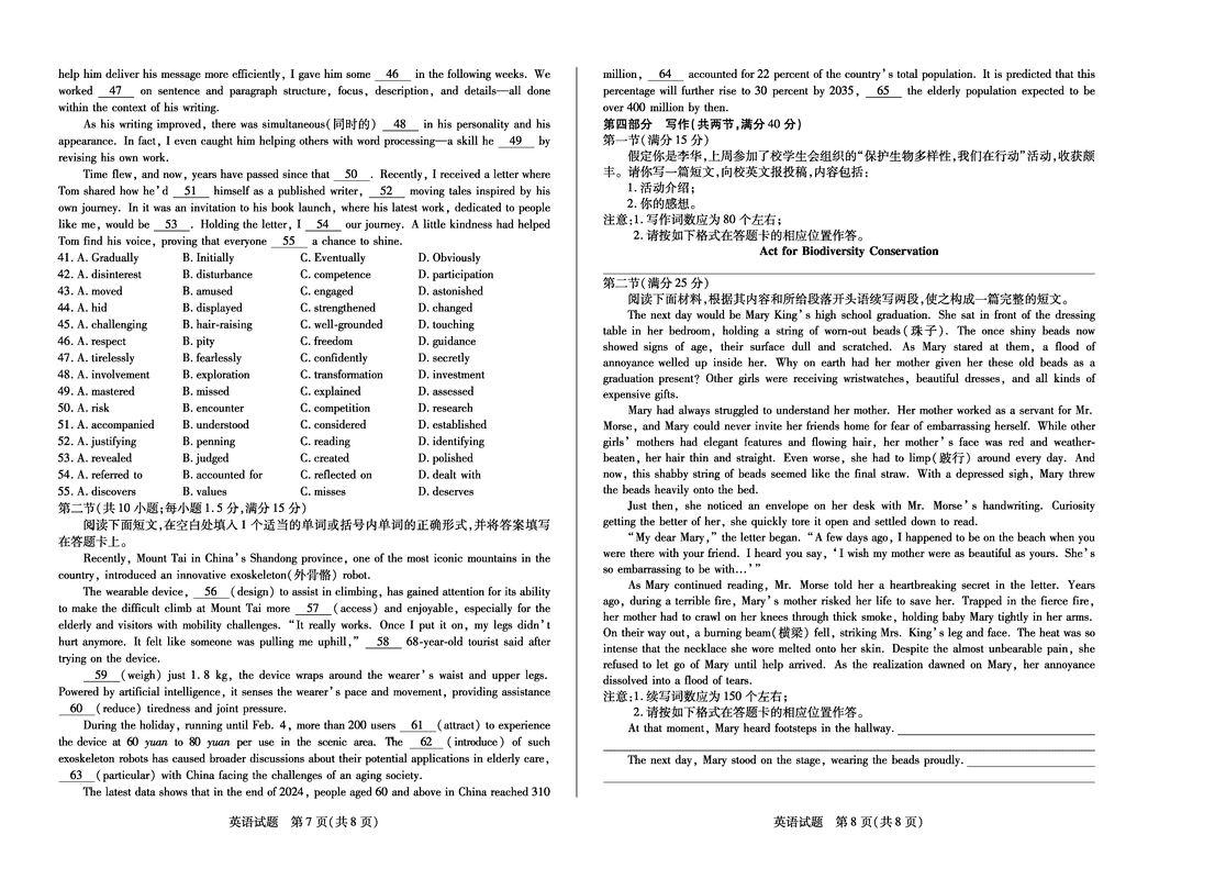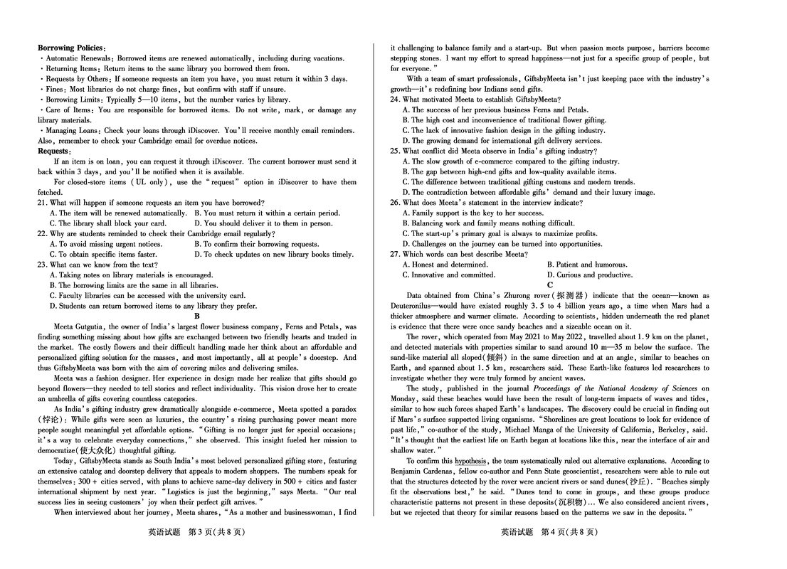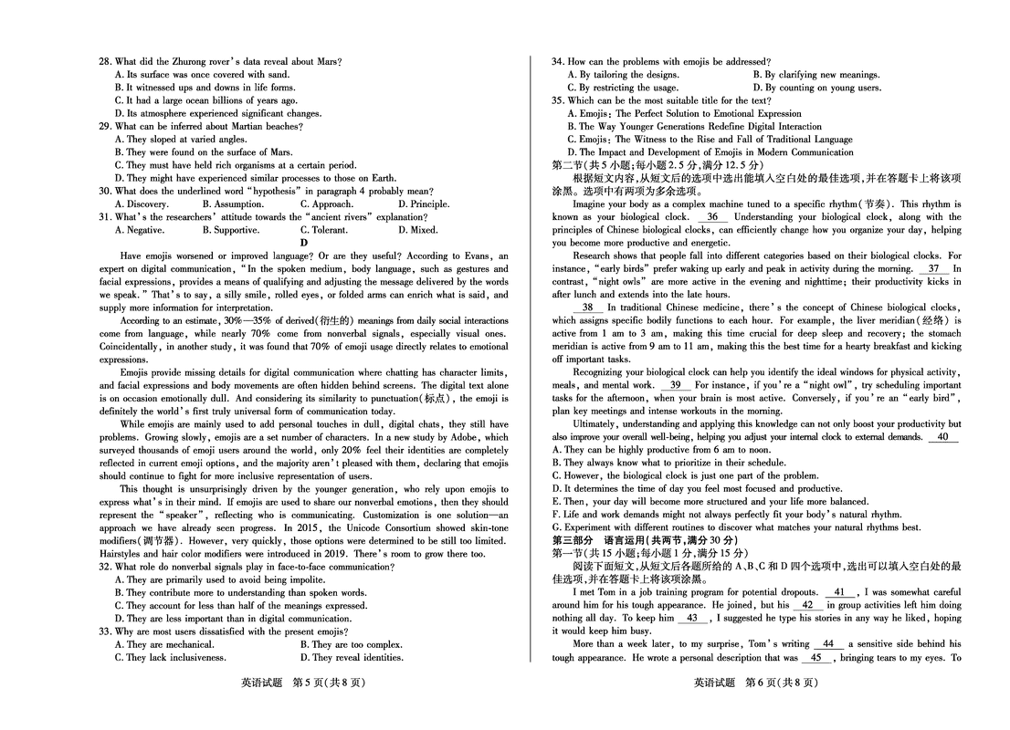 天一大联考·河南省2024-2025高二下学期期末英语试题及答案