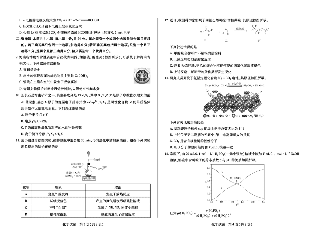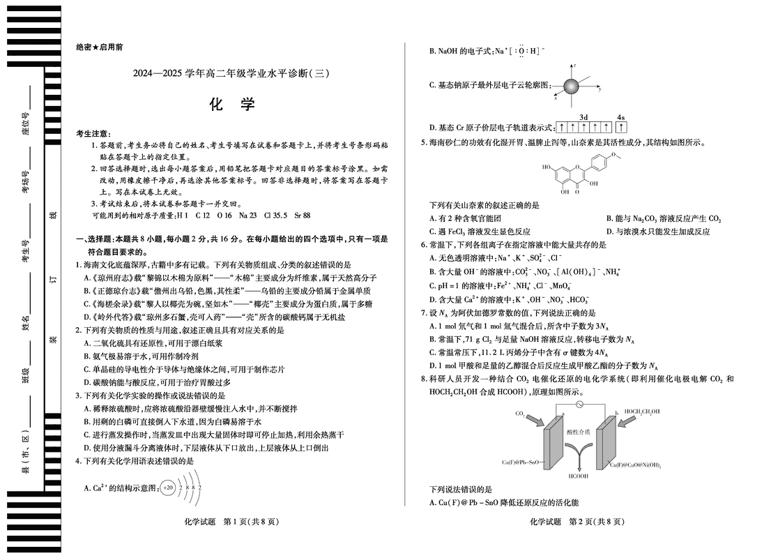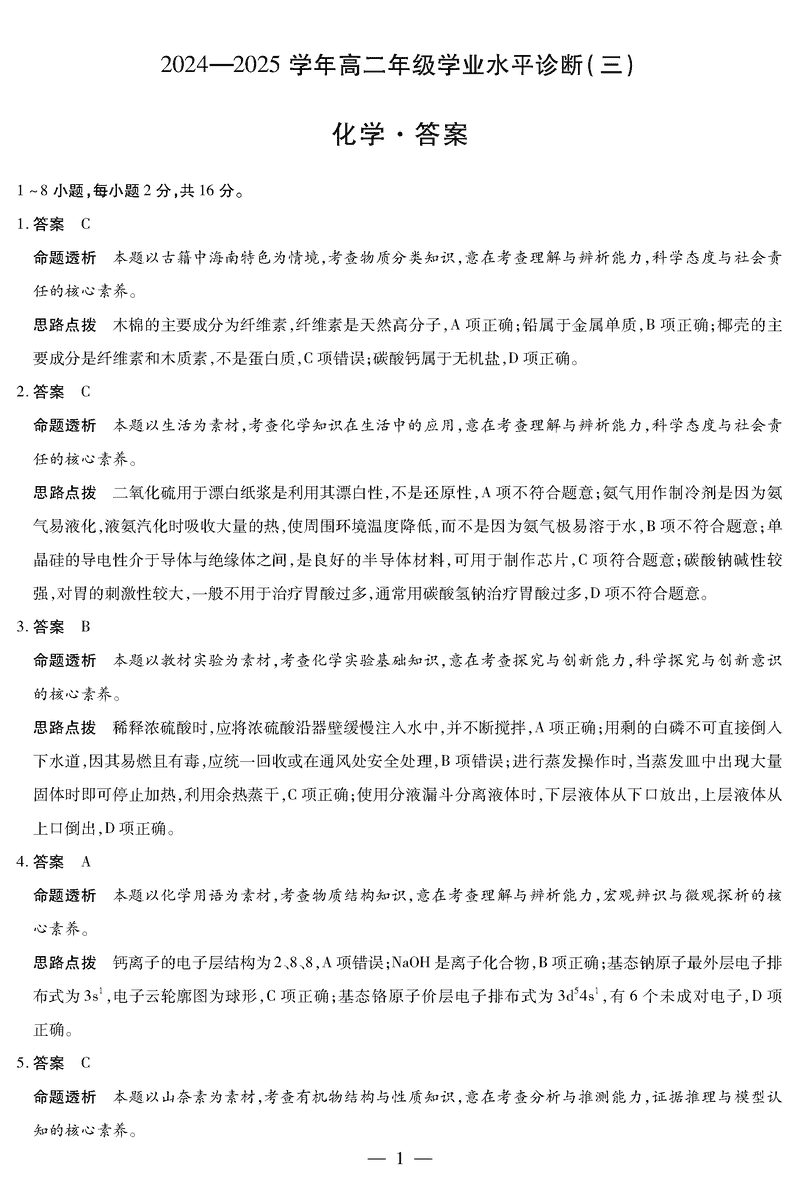 天一大联考·海南省2024-2025学年高二下学期学业水平诊断(三)化学试题及答案