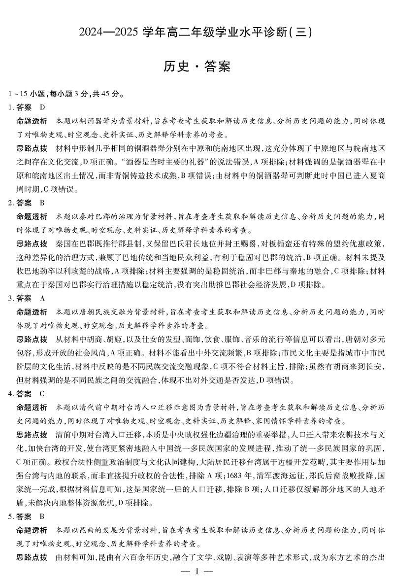 天一大联考·海南省2024-2025学年高二下学期学业水平诊断(三)历史试题及答案