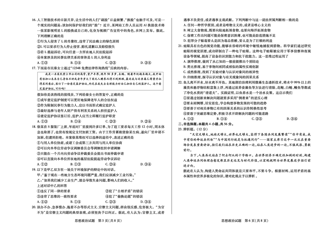 政治试题及答案解析
