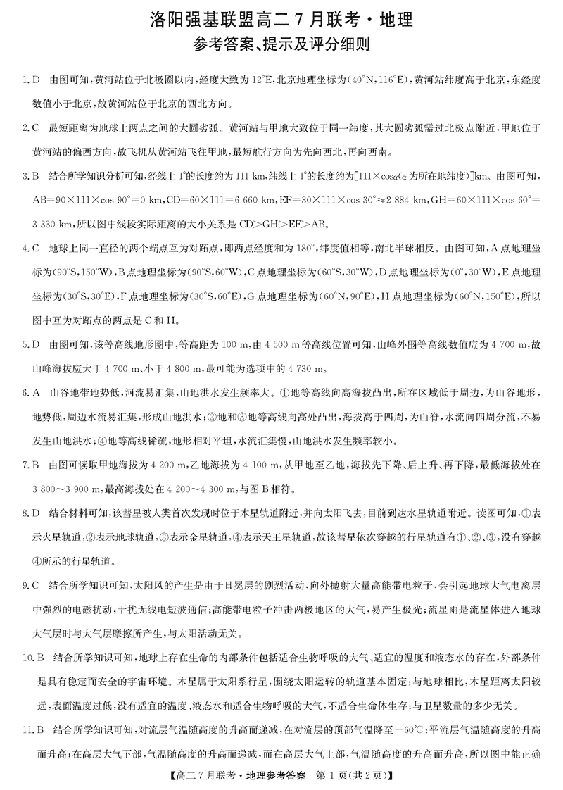 洛阳强基联盟2025年高二7月联考地理试题及答案 时间:2025-07-14 河南 文综试题 河南洛阳强基联盟2025年高二7月联考地理考试已于近日开考,为方便考生考后及时查看考试情况,查漏补缺、弥补不足,本文整理了试题答案解析相关信息! 汇总:河南洛阳市强基联盟2025年高二7月联考 地理试题及答案解析