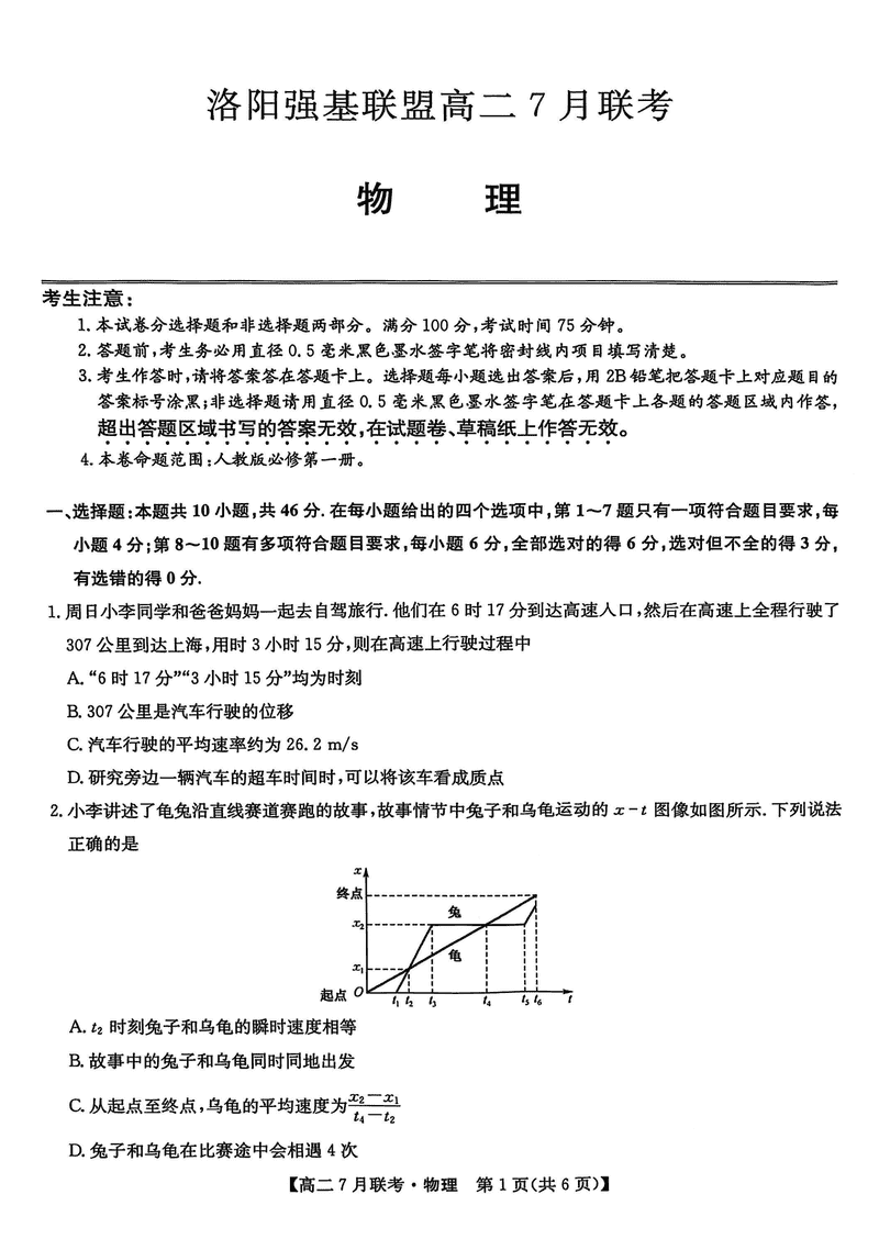 洛阳强基联盟2025年高二7月联考物理试题及答案 时间:2025-07-14 河南 理综试题 河南洛阳强基联盟2025年高二7月联考物理考试已于近日开考,为方便考生考后及时查看考试情况,查漏补缺、弥补不足,本文整理了试题答案解析相关信息! 汇总:河南洛阳市强基联盟2025年高二7月联考 物理试题及答案解析